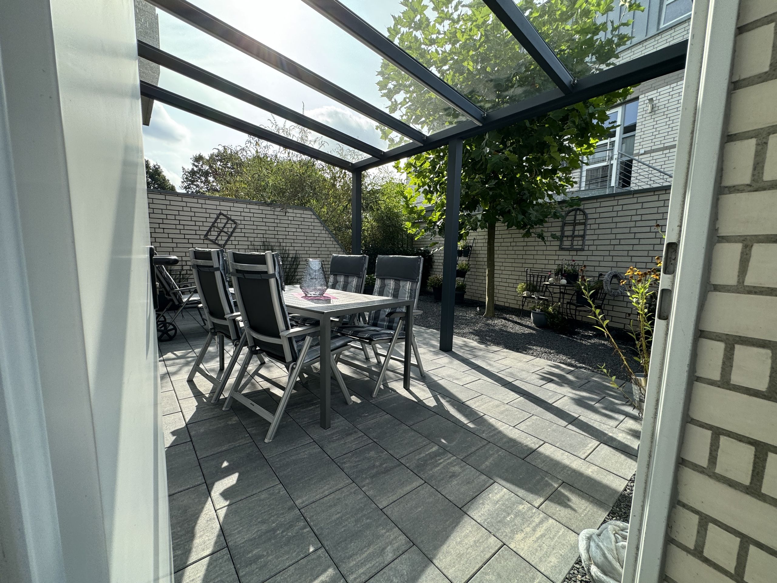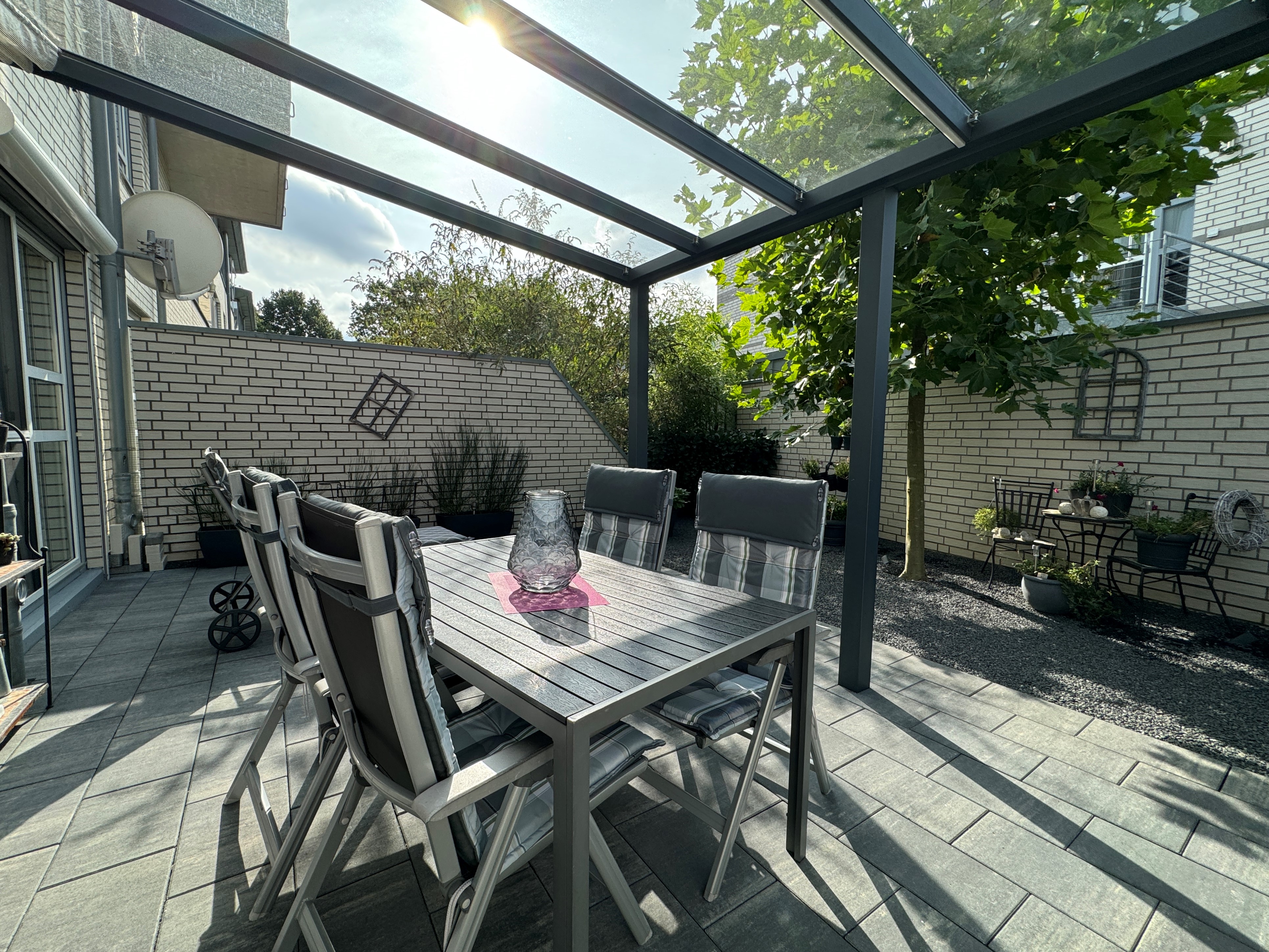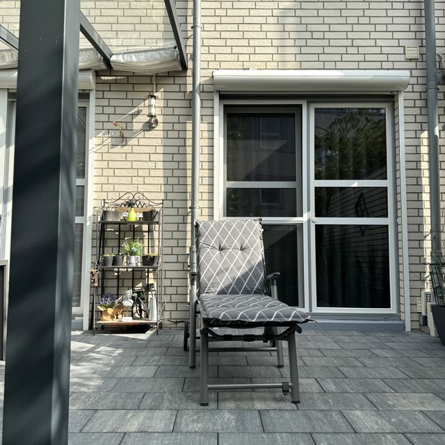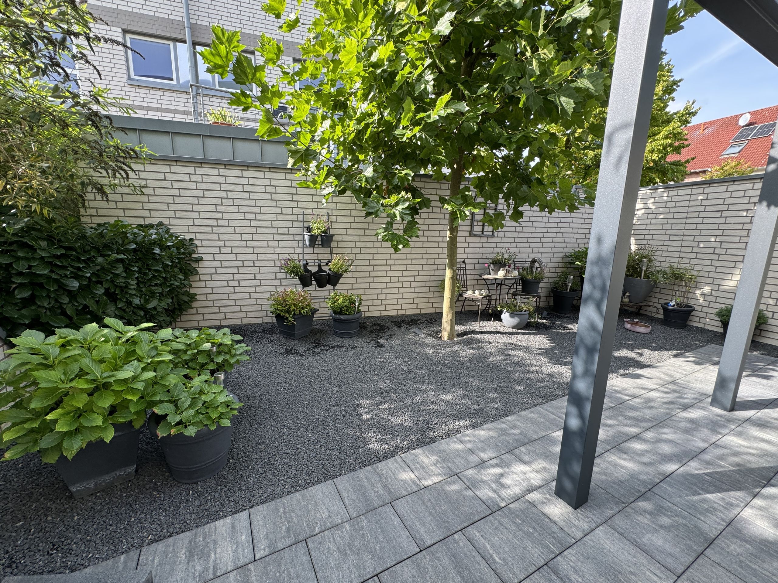 Diese ca. 54 m² Erdgeschoss Wohnung wurde 2020 komplett renoviert und das sieht man ihr auch an. Sie ist in so guten Zustand, dass Sie eigentlich direkt einziehen können. Aber schauen wir uns die schöne Wohnung doch einmal genauer an. Wir betreten die helle Diele. Ausreichend Platz für Schuhschrank und Garderobe. Rechts liegt ein richtiges Wohlfühlbad. Tageslichtfenster, ebenerdige Dusche, bodentiefe Wandfliesen in Weiß und große graue Bodenfliesen- hier werden selbst Morgenmuffel munter. Die großen eleganten Bodenfliesen finden wir, außer im Schlafzimmer, auch im Rest der Wohnung wieder. Außerdem verfügt die gesamte Wohnung über Fußbodenheizung. Links an der Diele ist direkt der kleine praktische Hauswirtschaftsraum. Hier gibt es neben Waschmaschine und Trockner ein wenig Stauraum. Direkt neben dem Hauswirtschaftsraum befindet sich das ca. 11,5 m² große Schlafzimmer mit hochwertigem Parkett. Wie auch vom Wohn-Esszimmer gelangt man von dort durch eine große Glastür hinaus auf die Terrasse. Beide Räume haben Außenjalousien mit Motor. Den Flur entlang nach hinten kommt hinter der ca. 6,3 m² großen Küche (die schicke helle Einbauküche ist schon im Kaufpreis enthalten) der tolle offene Wohn-Essbereich mit viel Großzügigkeit. Und mit viel Licht. Denn die großen Boden Fenster lassen sehr viel Licht herein. Und sie bieten einen zauberhaften Blick in den wunderschön angelegten Garten. Dieser wurde 2021 komplett neu gestaltet mit einem pflegeleichten Kiesbeet und einer großen gepflasterten Terrasse. Nachträglich angebrachte herausziehbare Plissees unter dem Glasdach sorgen dafür, dass Sie nicht nur vor Regen, sondern auch vor Sonne geschützt sitzen können. Hier werden Sie sicher gemütliche Grillabende mit Freunden und Familie verbringen. Eine Tür führt vom Garten direkt hinaus zur Straße und zu Ihrem Stellplatz, so bekommen Sie Ihre Einkäufe schnell und trocken ins Haus. Anstelle eines Kellers hat die Wohnung einen eigenen Abstellraum direkt neben dem PKW-Stellplatz. Rechts von der Haustür gibt es einen großen Raum, in dem die Mülltonnen stehen, hier können auch die Fahrräder untergebracht werden. Also auch wenn Sie hier nicht selbst wohnen möchten, sind wir sicher: wenn Sie diese schöne Wohnung sehen, wissen Sie, dass Ihr Geld hier gut investiert ist! Sie kaufen die Wohnung ohne Mieter, darum können Sie entweder direkt selbst dort einziehen oder auch für mindestens 675 € vermieten.