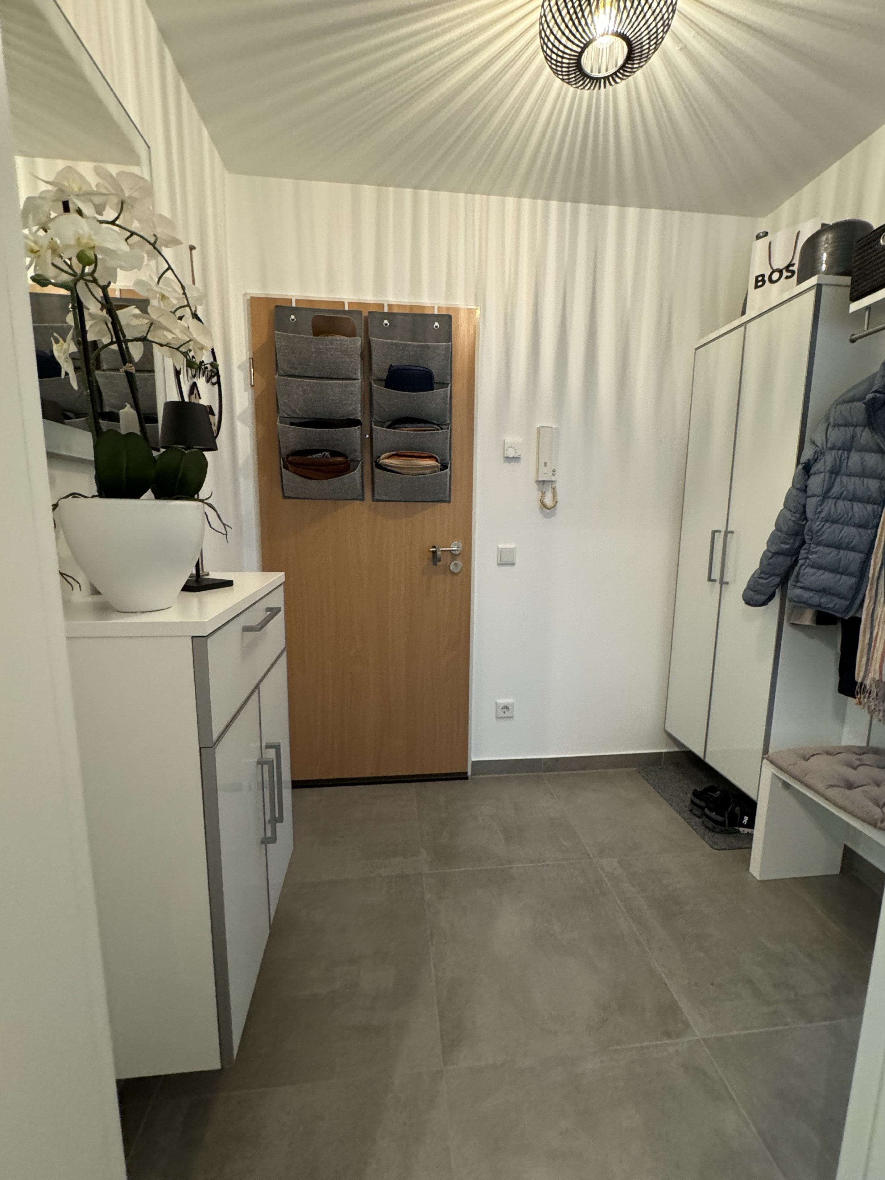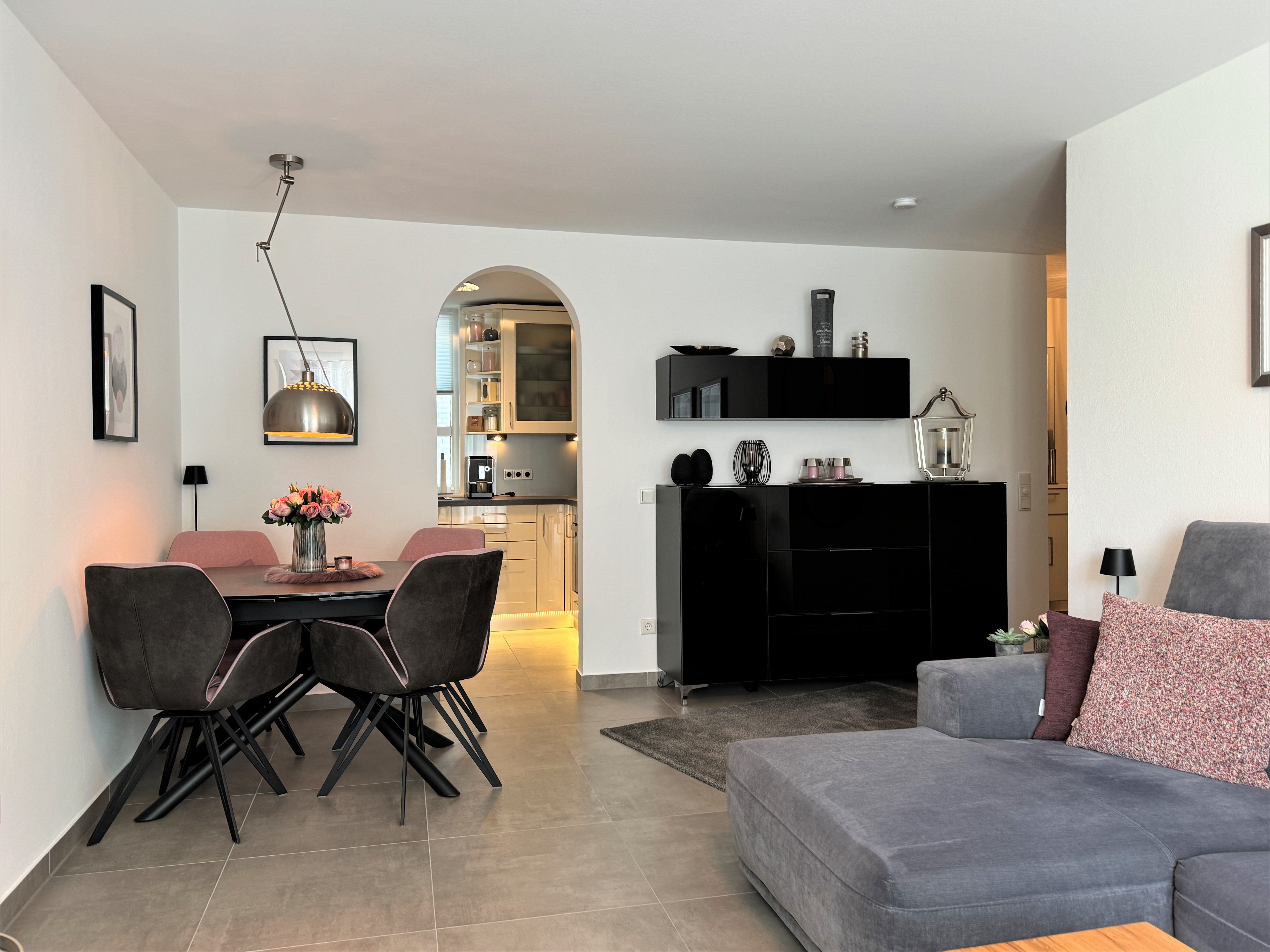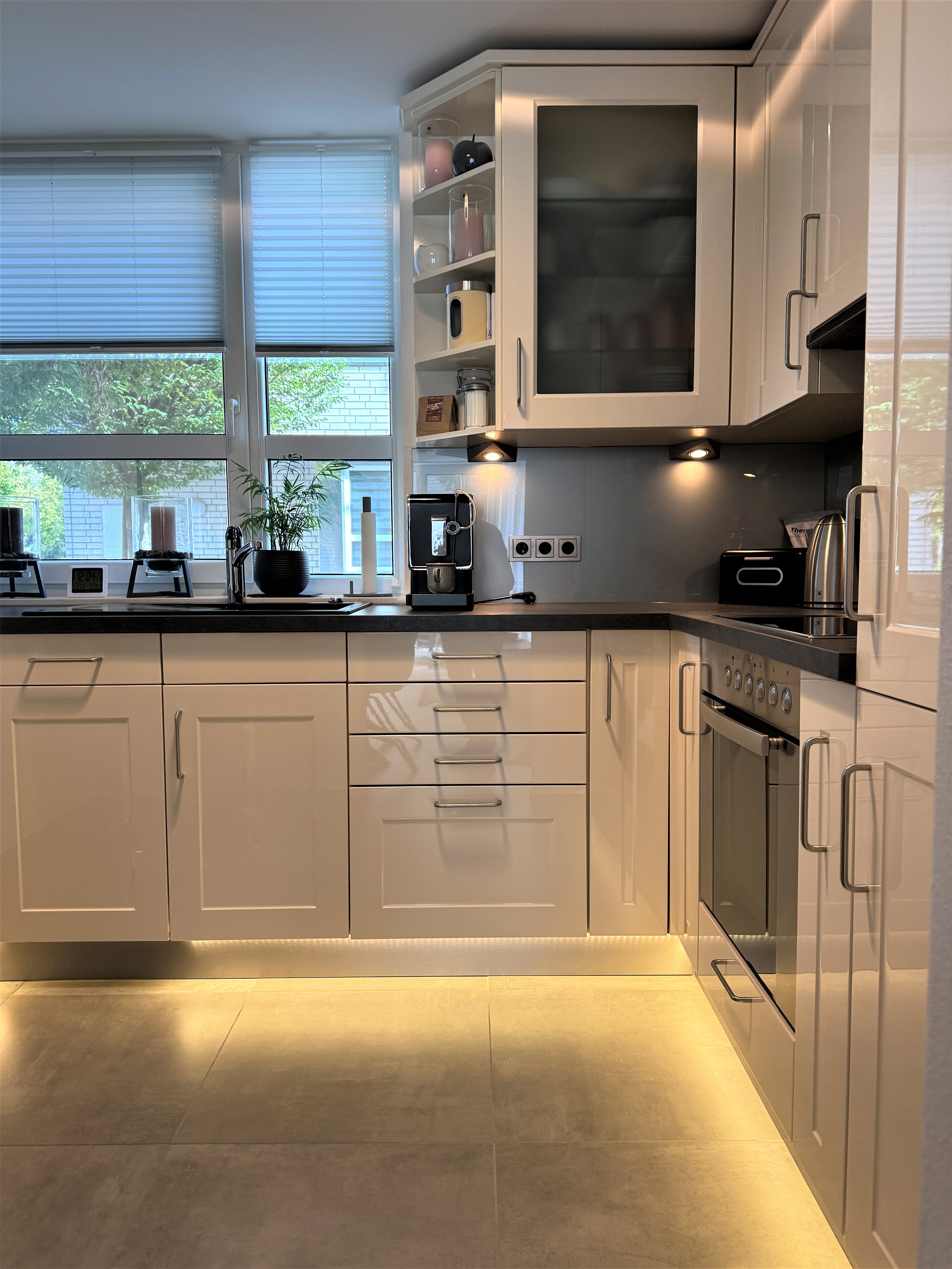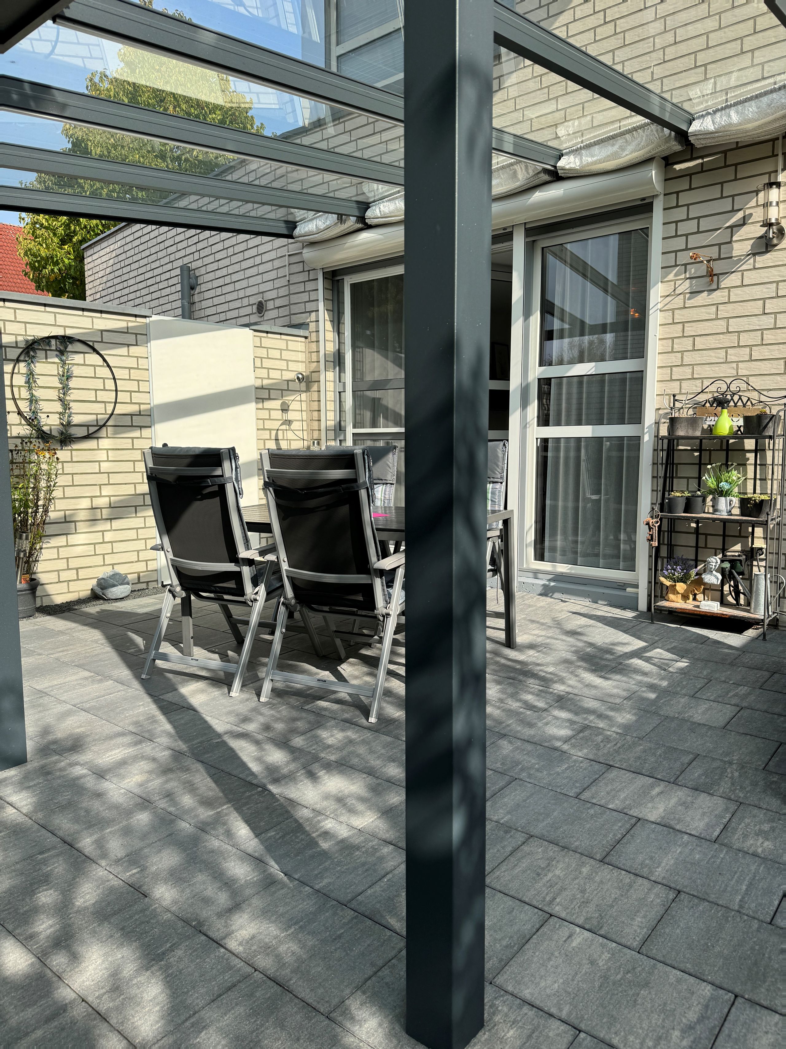 Diese ca. 54 m² Erdgeschoss Wohnung wurde 2020 komplett renoviert und das sieht man ihr auch an. Sie ist in so guten Zustand, dass Sie eigentlich direkt einziehen können. Aber schauen wir uns die schöne Wohnung doch einmal genauer an. Wir betreten die helle Diele. Ausreichend Platz für Schuhschrank und Garderobe. Rechts liegt ein richtiges Wohlfühlbad. Tageslichtfenster, ebenerdige Dusche, bodentiefe Wandfliesen in Weiß und große graue Bodenfliesen- hier werden selbst Morgenmuffel munter. Die großen eleganten Bodenfliesen finden wir, außer im Schlafzimmer, auch im Rest der Wohnung wieder. Außerdem verfügt die gesamte Wohnung über Fußbodenheizung. Links an der Diele ist direkt der kleine praktische Hauswirtschaftsraum. Hier gibt es neben Waschmaschine und Trockner ein wenig Stauraum. Direkt neben dem Hauswirtschaftsraum befindet sich das ca. 11,5 m² große Schlafzimmer mit hochwertigem Parkett. Wie auch vom Wohn-Esszimmer gelangt man von dort durch eine große Glastür hinaus auf die Terrasse. Beide Räume haben Außenjalousien mit Motor. Den Flur entlang nach hinten kommt hinter der ca. 6,3 m² großen Küche (die schicke helle Einbauküche ist schon im Kaufpreis enthalten) der tolle offene Wohn-Essbereich mit viel Großzügigkeit. Und mit viel Licht. Denn die großen Boden Fenster lassen sehr viel Licht herein. Und sie bieten einen zauberhaften Blick in den wunderschön angelegten Garten. Dieser wurde 2021 komplett neu gestaltet mit einem pflegeleichten Kiesbeet und einer großen gepflasterten Terrasse. Nachträglich angebrachte herausziehbare Plissees unter dem Glasdach sorgen dafür, dass Sie nicht nur vor Regen, sondern auch vor Sonne geschützt sitzen können. Hier werden Sie sicher gemütliche Grillabende mit Freunden und Familie verbringen. Eine Tür führt vom Garten direkt hinaus zur Straße und zu Ihrem Stellplatz, so bekommen Sie Ihre Einkäufe schnell und trocken ins Haus. Anstelle eines Kellers hat die Wohnung einen eigenen Abstellraum direkt neben dem PKW-Stellplatz. Rechts von der Haustür gibt es einen großen Raum, in dem die Mülltonnen stehen, hier können auch die Fahrräder untergebracht werden. Also auch wenn Sie hier nicht selbst wohnen möchten, sind wir sicher: wenn Sie diese schöne Wohnung sehen, wissen Sie, dass Ihr Geld hier gut investiert ist! Sie kaufen die Wohnung ohne Mieter, darum können Sie entweder direkt selbst dort einziehen oder auch für mindestens 675 € vermieten.