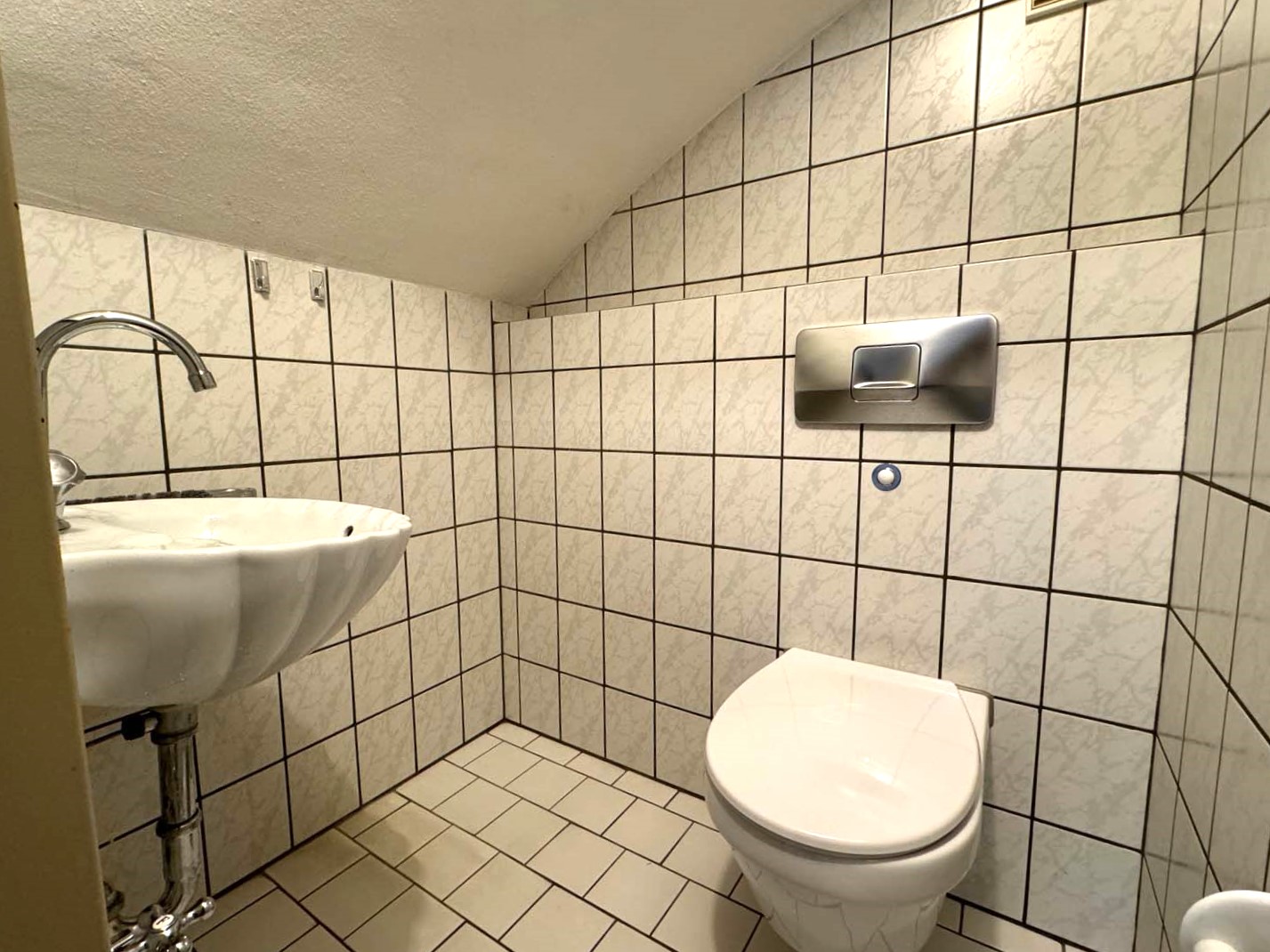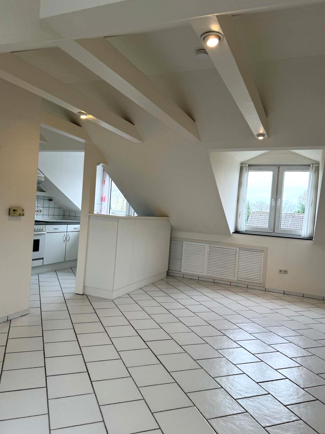 Hell und prima geschnitten! Das fällt einem sofort auf, wenn man diese schönen Wohnungen sieht. Aber schon vorher auf der Straße und im Treppenhaus sieht man, wie gepflegt das Haus ist und wie liebevoll die Anlagen auf dem großen Grundstück angelegt sind. Auf zwei Eingänge verteilt gibt es hier laut Teilungserklärung ursprünglich 6 Wohnungen. Und dass viele Eigentümer hier selbst wohnen, merkt man sofort. Drei Dachböden wurden später zu Wohnraum ausgebaut. Einer davon ist eine der Wohnungen, um die es hier geht. 1990 ist hier eine gemütliche ca. 55m² große Wohnung entstanden. Durch die 1997 entstandenen Dachgauben wirkt die Wohnung größer als sie eigentlich ist und es kommt sehr viel Licht herein. Direkt rechts liegt das hell geflieste Badezimmer mit Tageslichtfenster und Dusche und links ein kleines Arbeitszimmer. Daneben ein kleiner praktischer Abstellraum. Zusätzlich gibt es noch ein ca. 10 m² großes Schlafzimmer. Dahinter liegt das Highlight dieser Wohnung, der ca. 27 m² große Wohn- und Essbereich mit der offenen Küche. Das Besondere sind hier die großen Dachbalken und viel Stauraum in den Schrägen des Raumes. Die Wohnung im Dachgeschoss hat eine eigene Gastherme aus dem Baujahr 2015. Die Obergeschosswohnung wird über die Zentralheizung des Hauses geheizt. Hier wurde gerade eine neue Gas-Wärmepumpe installiert. Werfen wir doch einmal einen Blick in die Wohnung im Obergeschoss. Diese helle und großzügige Wohnung ist wirklich sehr gut durchdacht und bietet viel Platz auch für eine Familie. Von der zentralen geräumigen Diele aus gehen alle Räume ab, der Grundriss gleicht fast dem eines kleinen Bungalows. Praktisch ist auch das separate Gäste-WC. Küche und Bad haben ein Fenster. Das Badezimmer wurde ca. 1990 renoviert. Dort findet auch die Waschmaschine Ihren Platz. Die insgesamt drei Schlafräume lassen sich auf unterschiedliche Weise nutzen. Entweder Sie wohnen hier mit bis zu 4 Personen. Oder Sie möchten ein Arbeits- oder Gästezimmer? Dann ist diese schöne Wohnung sicher auch für 2 Personen bestens geeignet. Natürlich ist auch eine Vermietung bei diesem gelungenen Grundriss leicht möglich. Alle Räume sind rechtwinklig geschnitten und so wunderbar möblierbar. Große Fenster sorgen für viel Licht. Besonders schön ist der 32 m² große Wohnbereich. Von hier betreten Sie den 12 m² langen Balkon mit dem schönen Blick in den gemeinsamen Sonnengarten. Jeder Eigentümer hat die Möglichkeit, sich hier in Absprache ein eigenes kleines Gartenstück einzurichten. Der große Balkon ist sogar komplett überdacht. Das Gebäude ist voll unterkellert, so gehört ein großzügiger Kellerraum zu den Wohnungen. Vom gemeinsamen Waschkeller führt eine Treppe direkt nach draußen. Im Waschkeller steht die Waschmaschine der Dachgeschosswohnung. Einer der Eigentümer im Haus macht die Verwaltung, das sorgt für geringe Nebenkosten. Und so liegen die monatlichen Nebenkosten für diese Wohnung inkl. Verwaltung, Rücklage etc. € 390,--. Die Wohnung liegt an einer kleinen Wohnstraße ohne Durchgangsverkehr. Sie wohnen hier sehr schön ruhig und grün. Und auch wenn Sie eine gute Geldanlage suchen, sind Sie hier genau an der richtigen Adresse!