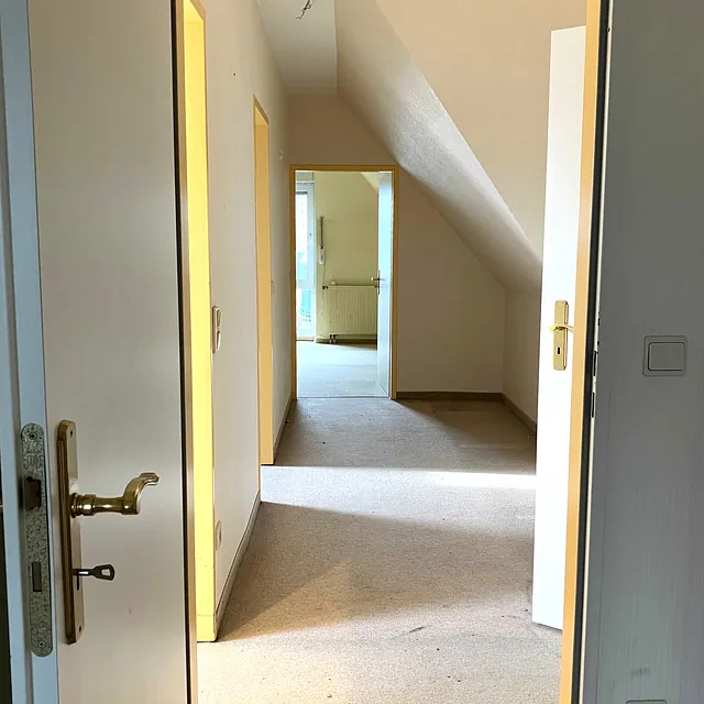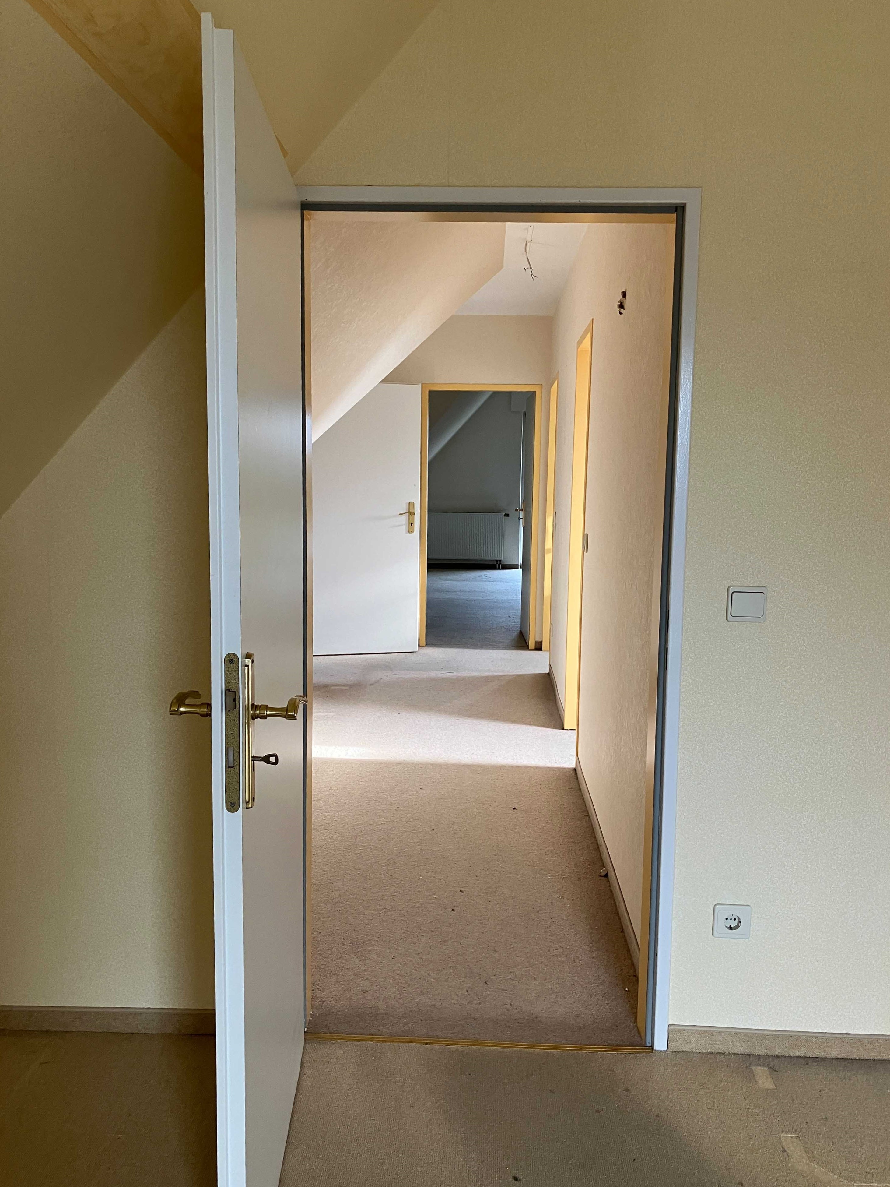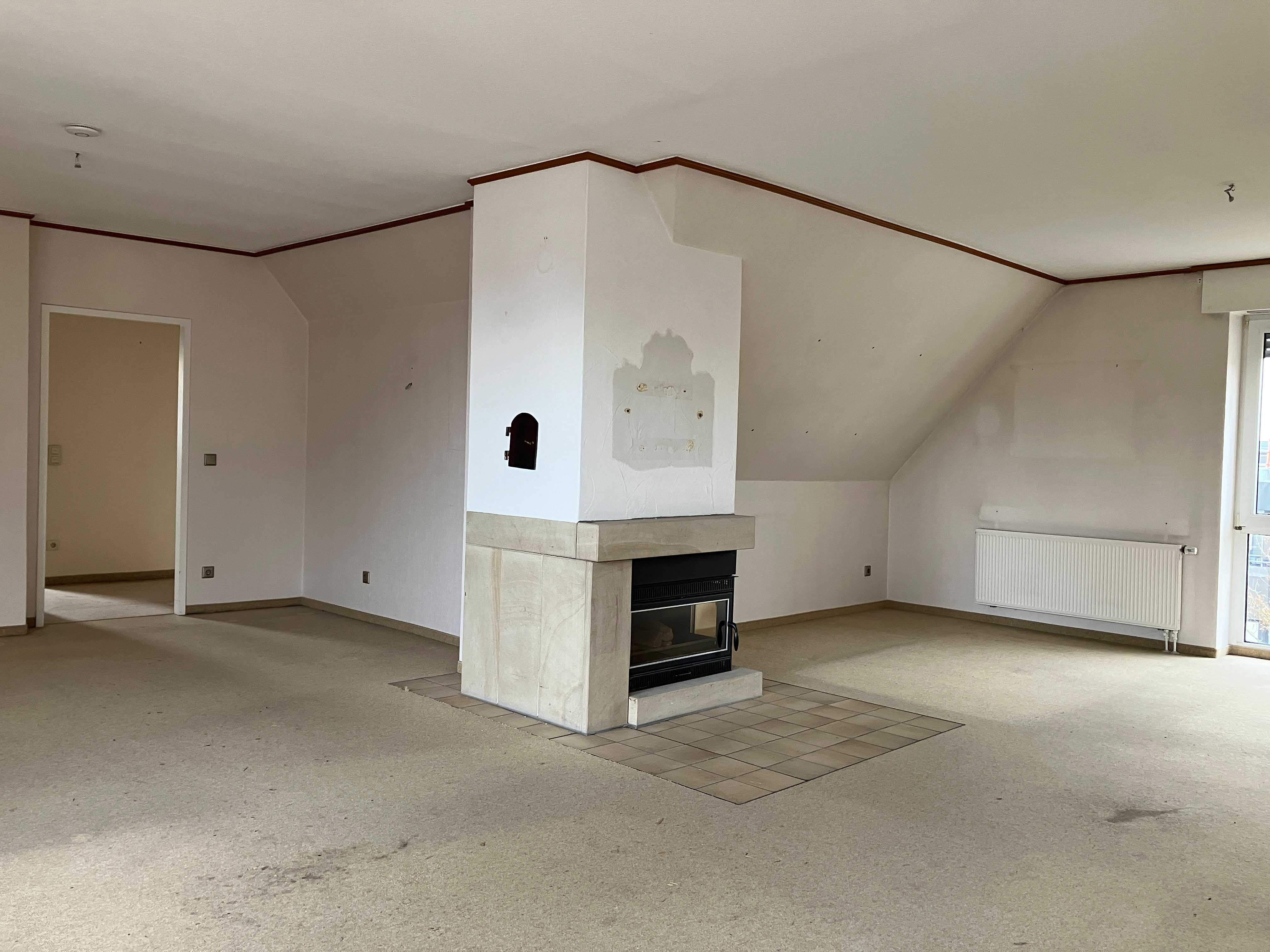 Im Kellergeschoss befinden sich die einzelnen Kellerräume. Ein Kellerraum gehört zur Wohnung. Ein Aufzug verbindet die Tiefgarage mit den darüberliegenden Geschossen. So können Sie diese ca. 112 m² große Dachgeschosswohnung bequem erreichen. Die Wohnfläche verteilt sich auf vier gut geschnittene Zimmer, Küche, Diele, Bad, Gäste-WC, Flur, Abstellräume und eine Dachterrasse. Wie Sie auf den Bildern sehen, benötigt die Wohnung etwas Zuwendung, was die Bodenbelege, Wände etc. angeht, aber der Schnitt der Wohnung wird Sie begeistern. Wir öffnen die Wohnungstür und stehen in der ca. 10 m² große Diele, von der das Gäste-WC und die Küche abgehen. An der Küche liegt einer der praktischen Abstellräume. Geradeaus an der Diele gehen wir in den knapp 40 m²großen Wohn- und Essbereich mit dem Zugang zur Dachterrasse und mit einem Kamin. Hinter dem Wohnbereich liegen an einem Flur das Badezimmer mit Tageslicht, Wanne und Dusche und drei weitere Zimmer. Zwei große Räume sind gut als Schlafzimmer zu nutzen, ein weiteres kleines Zimmer kann das Büro oder Gästezimmer werden. PKW-Stellplätze können in der Tiefgarage angemietet werden. Nun entscheiden Sie, ob Sie die Wohnung selbst bewohnen oder als lukratives Anlageobjekt erwerben möchten.