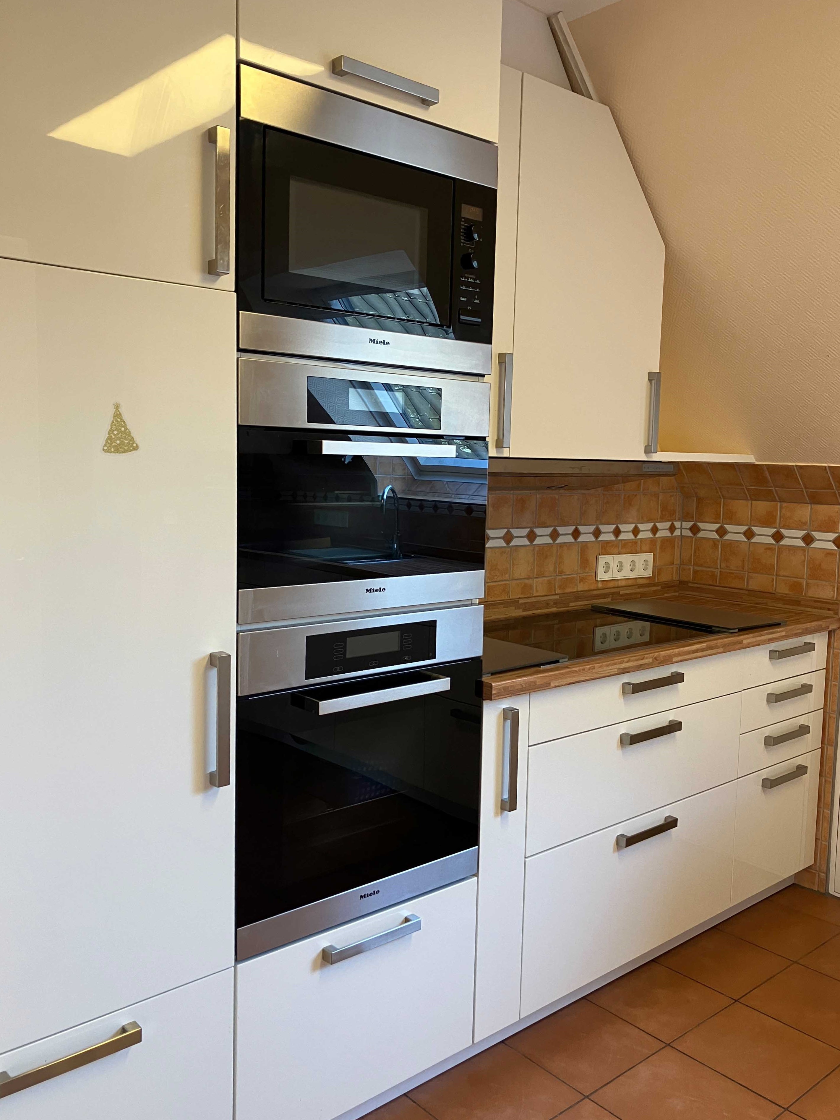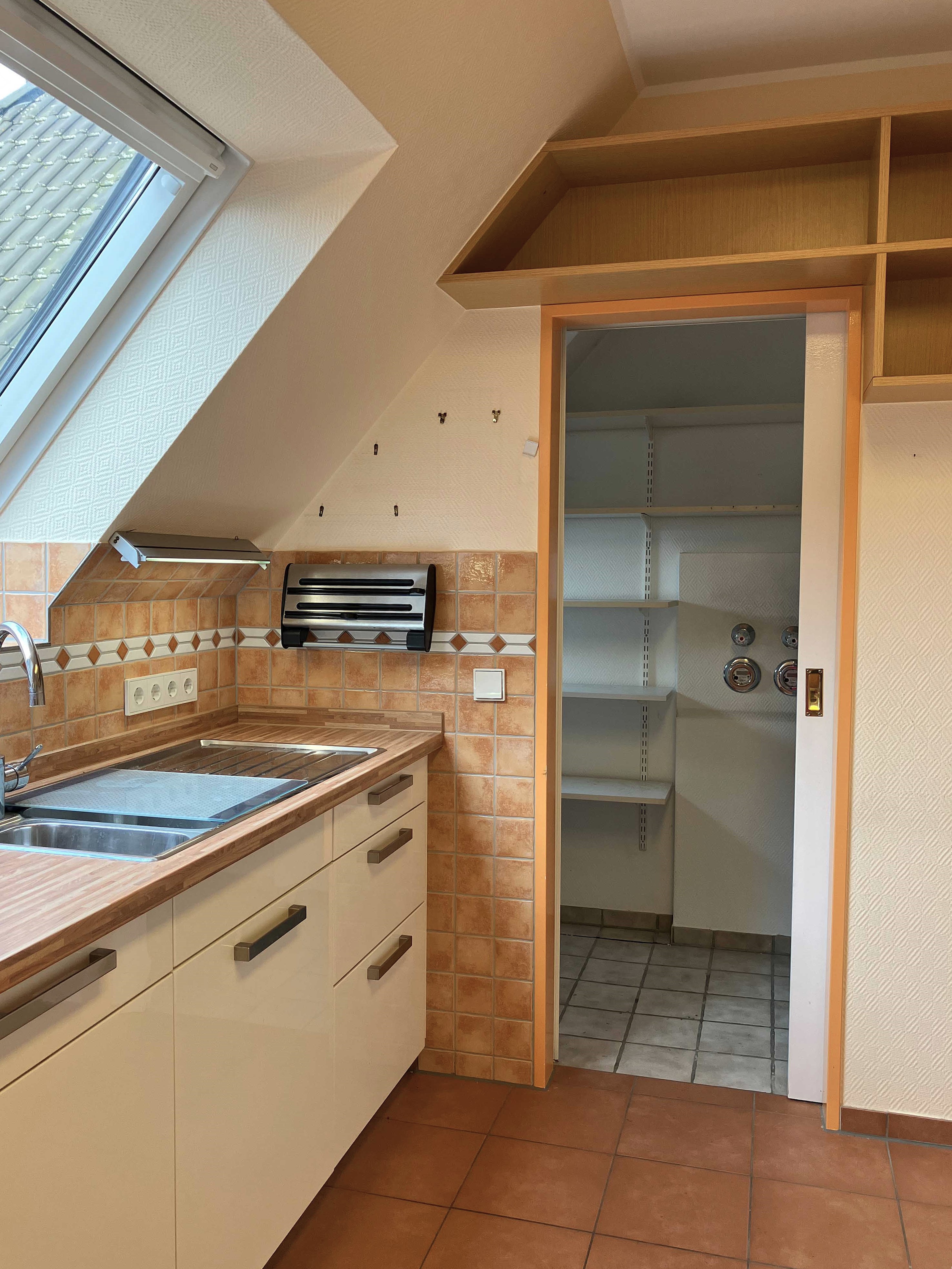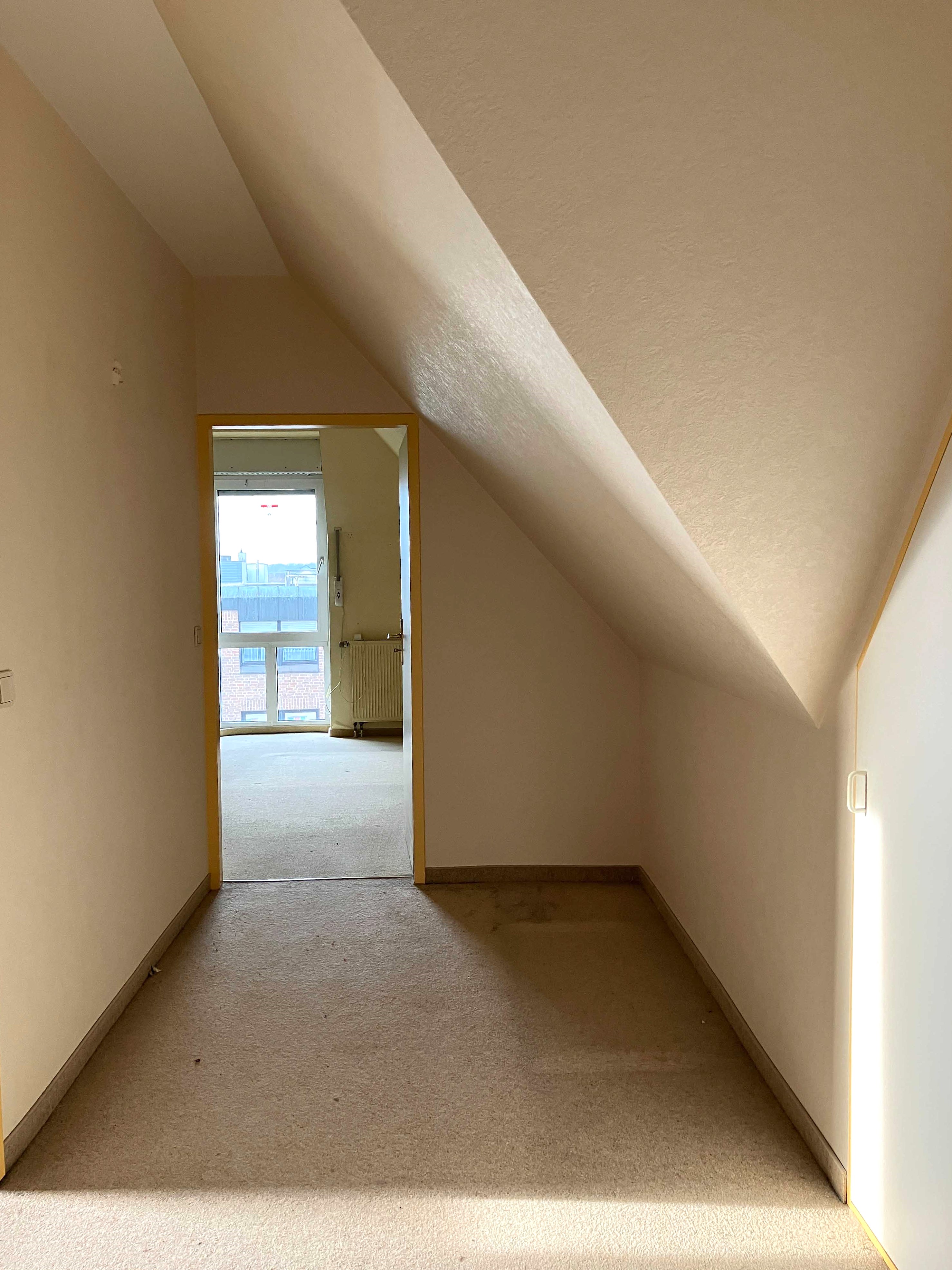 Im Kellergeschoss befinden sich die einzelnen Kellerräume. Ein Kellerraum gehört zur Wohnung. Ein Aufzug verbindet die Tiefgarage mit den darüberliegenden Geschossen. So können Sie diese ca. 112 m² große Dachgeschosswohnung bequem erreichen. Die Wohnfläche verteilt sich auf vier gut geschnittene Zimmer, Küche, Diele, Bad, Gäste-WC, Flur, Abstellräume und eine Dachterrasse. Wie Sie auf den Bildern sehen, benötigt die Wohnung etwas Zuwendung, was die Bodenbelege, Wände etc. angeht, aber der Schnitt der Wohnung wird Sie begeistern. Wir öffnen die Wohnungstür und stehen in der ca. 10 m² große Diele, von der das Gäste-WC und die Küche abgehen. An der Küche liegt einer der praktischen Abstellräume. Geradeaus an der Diele gehen wir in den knapp 40 m²großen Wohn- und Essbereich mit dem Zugang zur Dachterrasse und mit einem Kamin. Hinter dem Wohnbereich liegen an einem Flur das Badezimmer mit Tageslicht, Wanne und Dusche und drei weitere Zimmer. Zwei große Räume sind gut als Schlafzimmer zu nutzen, ein weiteres kleines Zimmer kann das Büro oder Gästezimmer werden. PKW-Stellplätze können in der Tiefgarage angemietet werden. Nun entscheiden Sie, ob Sie die Wohnung selbst bewohnen oder als lukratives Anlageobjekt erwerben möchten.