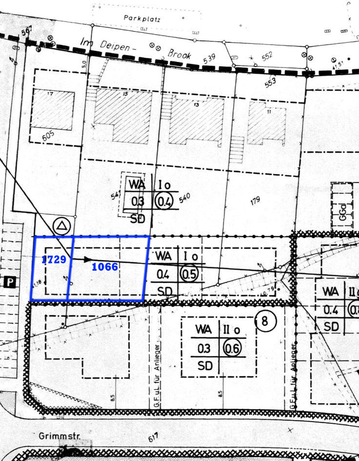 Das Grundstück bietet beste Voraussetzungen für den Bau eines modernen Einfamilien- oder Doppelhauses mit Garten. Die Zuwegung erfolgt über die Straße „Im Deipen Brook“, wo aktuell der Umbau der Parkplätze zur privaten Zufahrt vorgesehen ist. Das wurde mündlich schon vorab mit dem Bauamt besprochen.