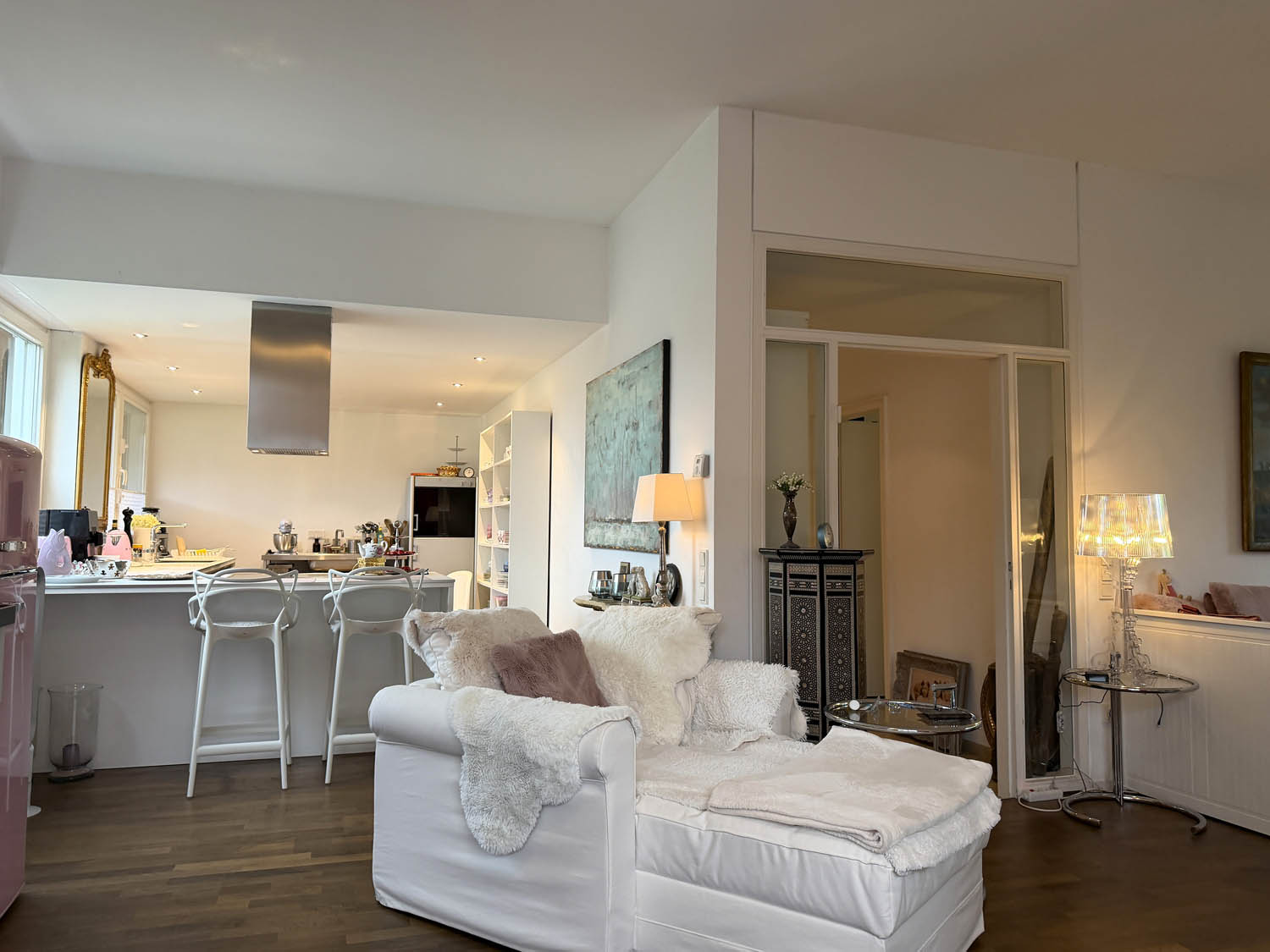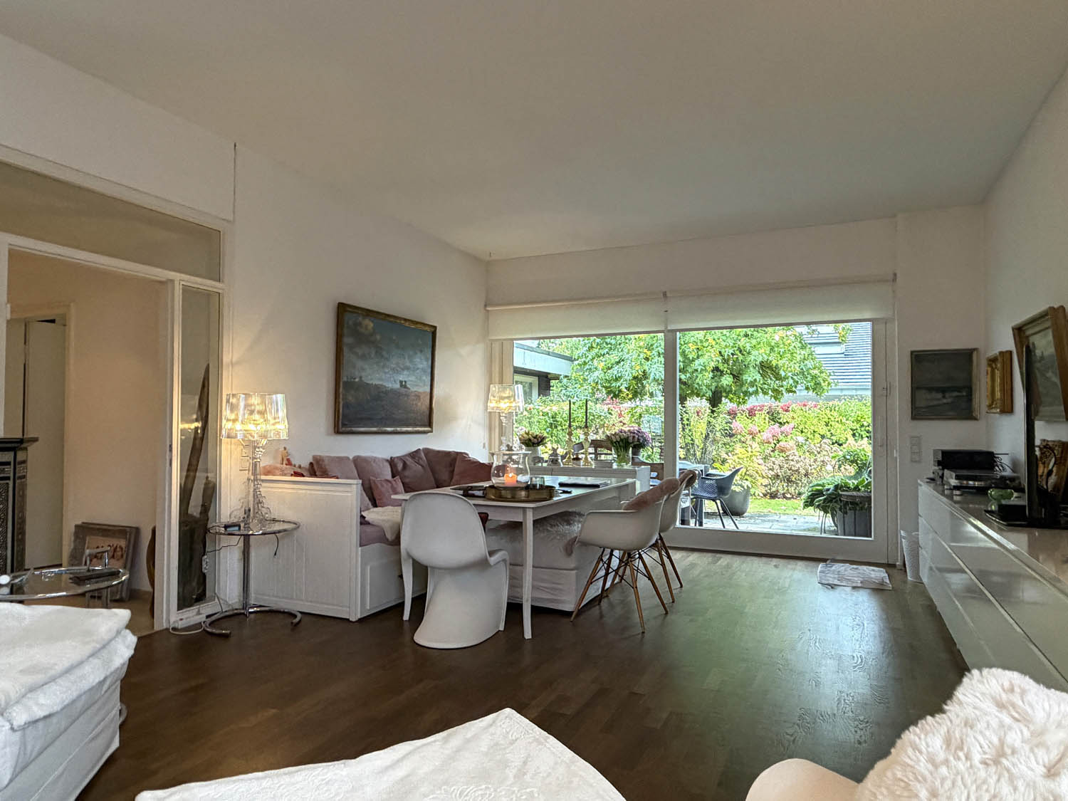Das Haus wurde 1965 erbaut und über die Jahre liebevoll modernisiert – heute präsentiert es sich in einem hervorragenden Zustand. Auf rund 140 m² Wohnfläche spielt sich das gesamte Leben bequem auf einer Ebene ab – perfekt für Paare oder alle, die barrierearmes Wohnen schätzen. Über die helle Diele mit angrenzender Garderobe und Gäste-WC gelangt man hinten links in ein kleines Büro oder Gästezimmer und rechts in den offenen Wohn- und Essbereich mit einer Fläche von über 55 m². Große Fensterfronten sorgen für ein wunderbar offenes Wohngefühl und geben den Blick frei auf den liebevoll angelegten Garten. Die angrenzende Küche ist praktisch geschnitten und fügt sich harmonisch in den Wohnbereich ein. Durch die Glastür im Wohnzimmer tritt man direkt auf die sonnige Terrasse – ein herrlicher Platz für gemütliche Stunden im Freien mit Blick ins Grüne. Das ca. 630 m² große Grundstück bietet viel Privatsphäre und Platz zum Genießen.
