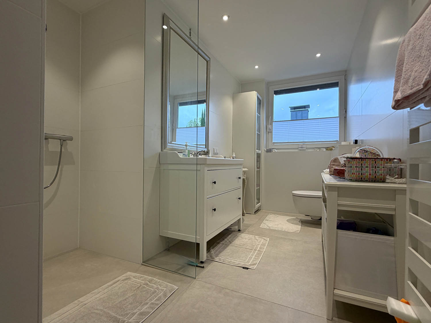 Zwei großzügige Schlafzimmer und das 2023 komplett erneuerte Badezimmer liegen ruhig am Ende des Flurs. Das Bad überzeugt mit einer ebenerdigen Dusche, zeitlosen Fliesen und einem Tageslichtfenster – modern, hell und einfach schön.