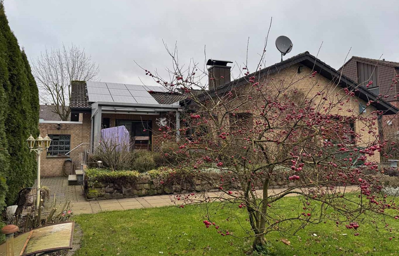 Immer wieder schön: ein klassischer Bungalow mit tollem Grundriss, schönen Räumen und viel Platz zum Leben. Das ist reizvoll: Die Wohn- und Schlafräume liegen alle auf einer Ebene - da muss man keine Treppen steigen. Schon der große Eingangsbereich bietet Platz für Familie, Gäste, Kinderwagen etc.. Direkt rechts an der Tür liegt das kleine Gäste-WC mit Tageslichtfenster. Es wurde genau wie das große Badezimmer vor ca. 5 Jahren renoviert. Das gemütliche Haus ist ideal für die kleine Familie. Es bietet im Erdgeschoss drei Schlafräume mit ca. 12,4 m² - ca. 17,9 m². Zusätzlich einen offenen Wohn- und Essbereich mit gesamt knapp 40 m². Der Raum wird sicher der Mittelpunkt des Familienlebens werden. Ein Kamin sorgt dort für wohlige Wärme an kalten Tagen und spart außerdem Heizkosten. An dem Wohn- und Essbereich liegt die gut geschnittene Küche. Sie wurde 2011 erneuert und ist im Kaufpreis enthalten. Von dort aus führt eine Tür auf die großzügige Terrasse. Diese wurde 2011 komplett mit einem Glasdach versehen. Dort sitzen Sie im Sommer vor Regen und Wind geschützt. Ein paar Stufen führen hinab in den schön angelegten Garten. Auf der großen Rasenfläche ist sicher auch noch Platz für einen Sandkasten oder ein Trampolin. Durch eine Brunnenpumpe sparen Sie Stadtwasser. Zurück im Haus werfen wir noch einen Blick in das Badezimmer. Wir sehen eine große bodentiefe Dusche, ein praktisches Bidet, eine Handtuchheizung, große weiße und cremefarbige Fliesen – dort werden Sie sich bestimmt wohlfühlen.