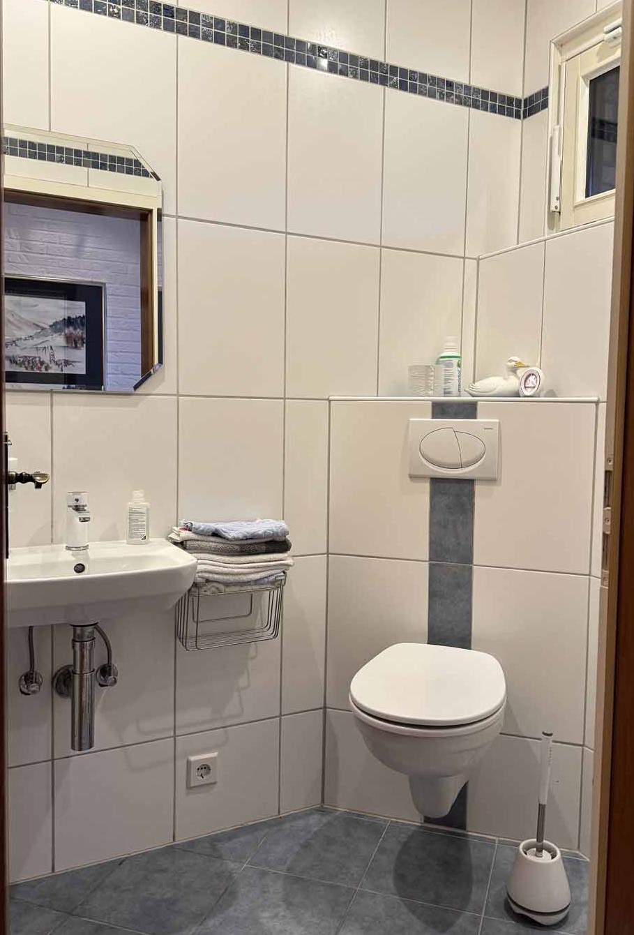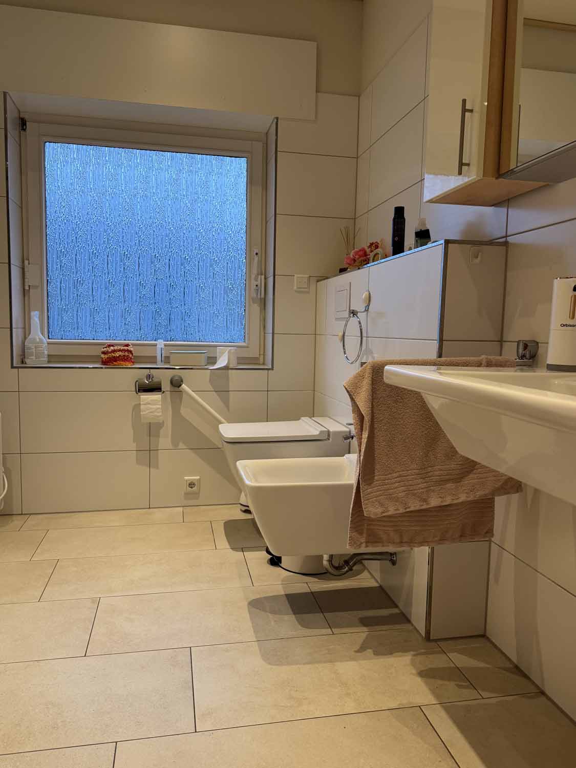 Das Haus ist auch unterkellert. Ca. 120 m² Keller mit Außentreppe und ca. 27 m² Garage bieten Platz für all Ihre Hobbies. Ein Kellerraum ist wohnlich ausgebaut mit Tageslichtfenster. Da im Keller auch ein Badezimmer ist, bietet sich dieser Raum als Gästebereich an. Im Keller befindet sich ebenfalls die Gaszentralheizung. 2018 wurde sie erneuert. Ebenfalls wurde 2018 eine Wasser-Enthärtungsanlage installiert. Top: die zusätzliche Sauna im Keller. Stärkt die Abwehr, sorgt für Entspannung. 2023 haben die Eigentümer 24 PV-Module aufs Dach setzen lassen. Durch die 10 KW PV-Anlage mit eigenem Speicher sind sie autark, was den Stromverbrauch angeht. Sie nutzen ihren eigenen Strom und so sparen sie das Geld, das sie sonst an den Versorgungsträger zahlen müssten. In einigen Bereichen entspricht das Haus noch dem Ursprungsbaujahr: Fenster, Dach, teilweise die Bodenbeläge. Sonst ist das Haus von 1980 gut gepflegt. Begeistern wird Sie die Lage in ruhiger, gepflegter Umgebung in Reckenfeld. Der Bahnhof ist nicht weit und Einkaufsmöglichkeiten gibt es reichlich.