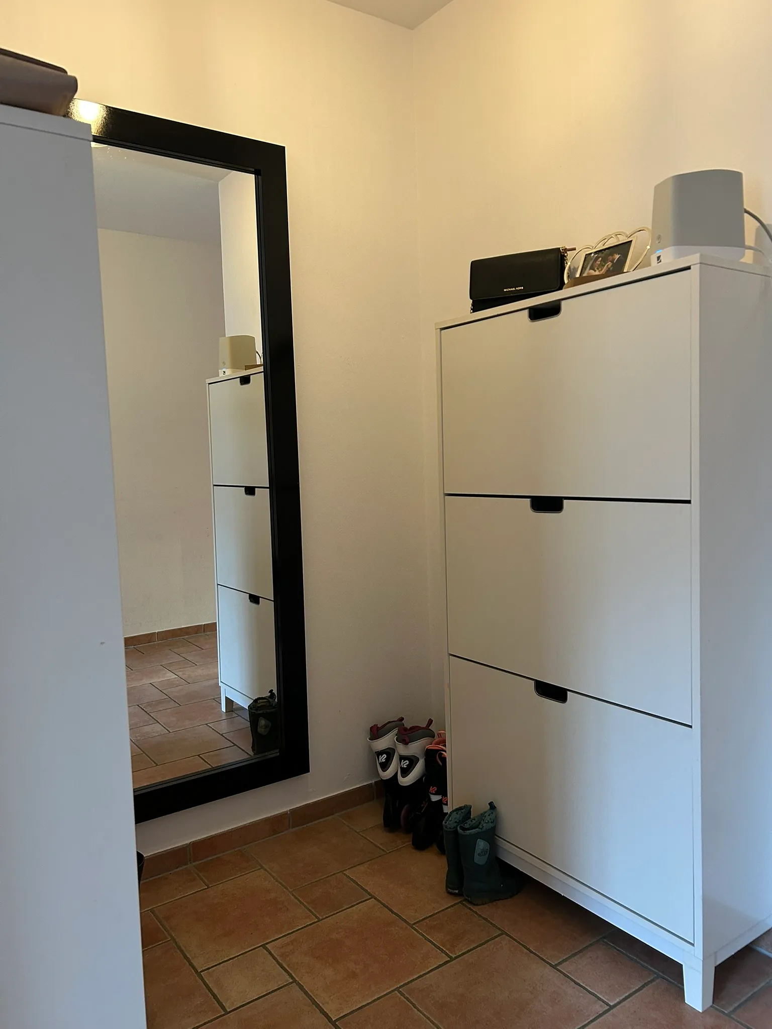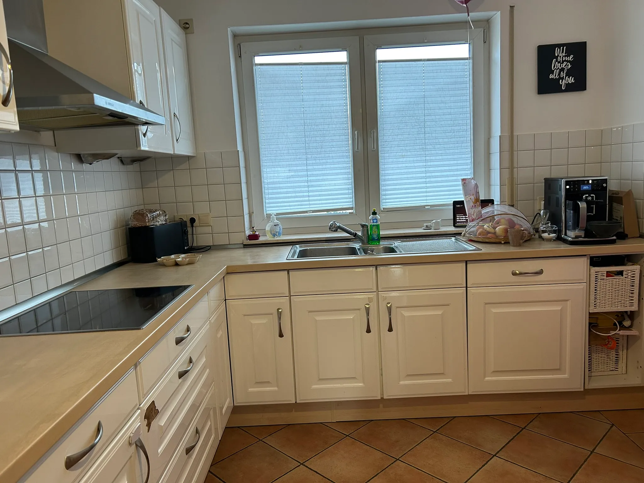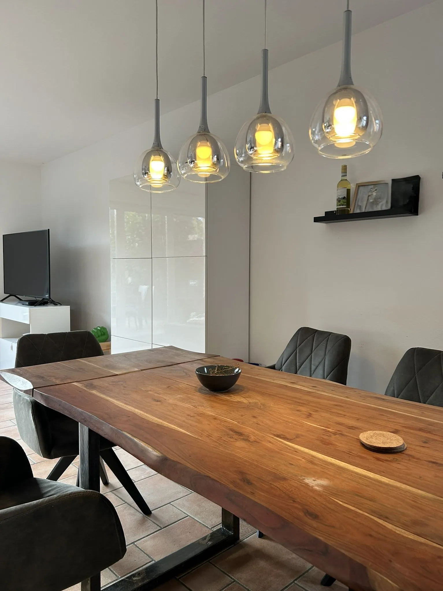 Schon beim Betreten des Hauses empfängt Sie das Erdgeschoss mit warmen Terrakottafliesen und einer durchgängigen Fußbodenheizung, die für behaglichen Komfort sorgt. Herzstück ist das großzügige, über Eck gestaltete Wohn- und Esszimmer, das viel Platz für gemeinsame Stunden bietet. Von hier aus gelangen Sie direkt auf die sonnige Südterrasse und in den grünen Garten – ideal für entspannte Nachmittage oder gesellige Abende im Freien. Die angrenzende Küche mit ca. 11 m² überzeugt durch kurze Wege zum Essbereich und einen angenehmen Blick Richtung Straße. Ergänzt wird das Erdgeschoss durch ein Gäste-WC sowie eine praktische Garderobennische im Eingangsbereich.