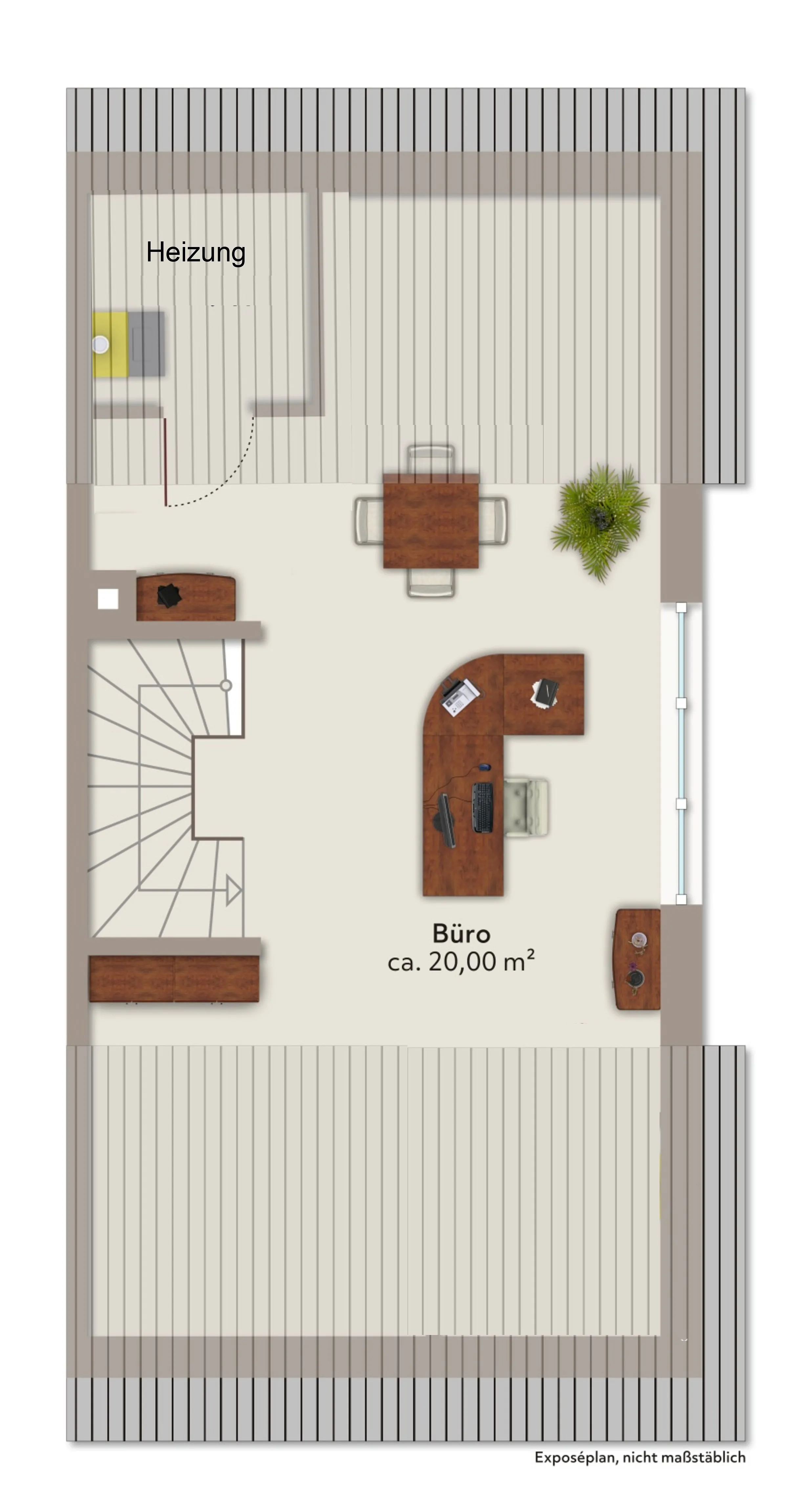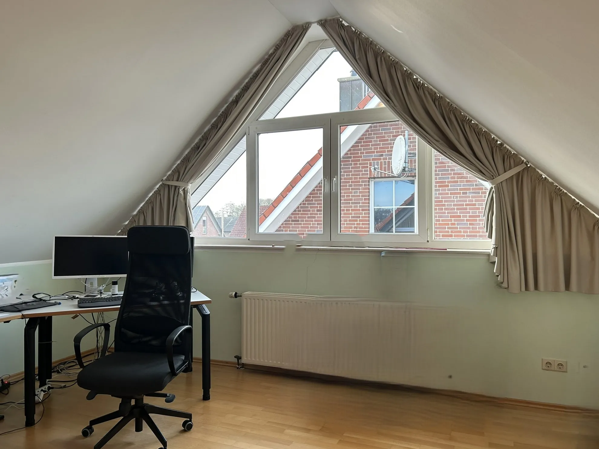 Ein echtes Plus ist der ausgebaute Spitzboden, der aktuell als Büro genutzt wird. Mit seinem charakteristischen Giebelfenster und viel Tageslicht bietet er einen idealen Rückzugsort – perfekt für Homeoffice, Hobby oder Gäste.