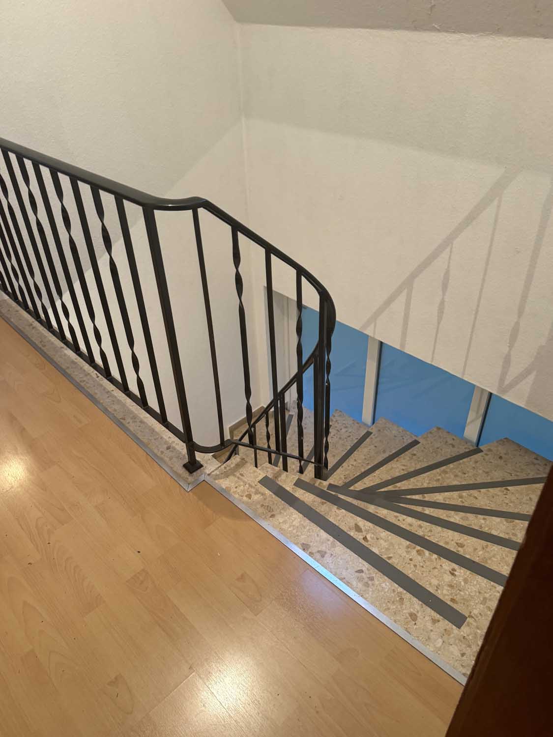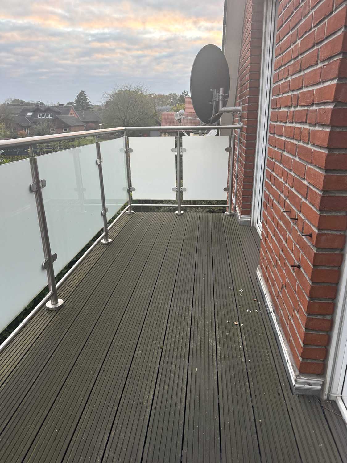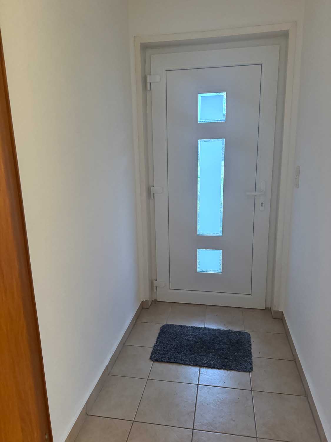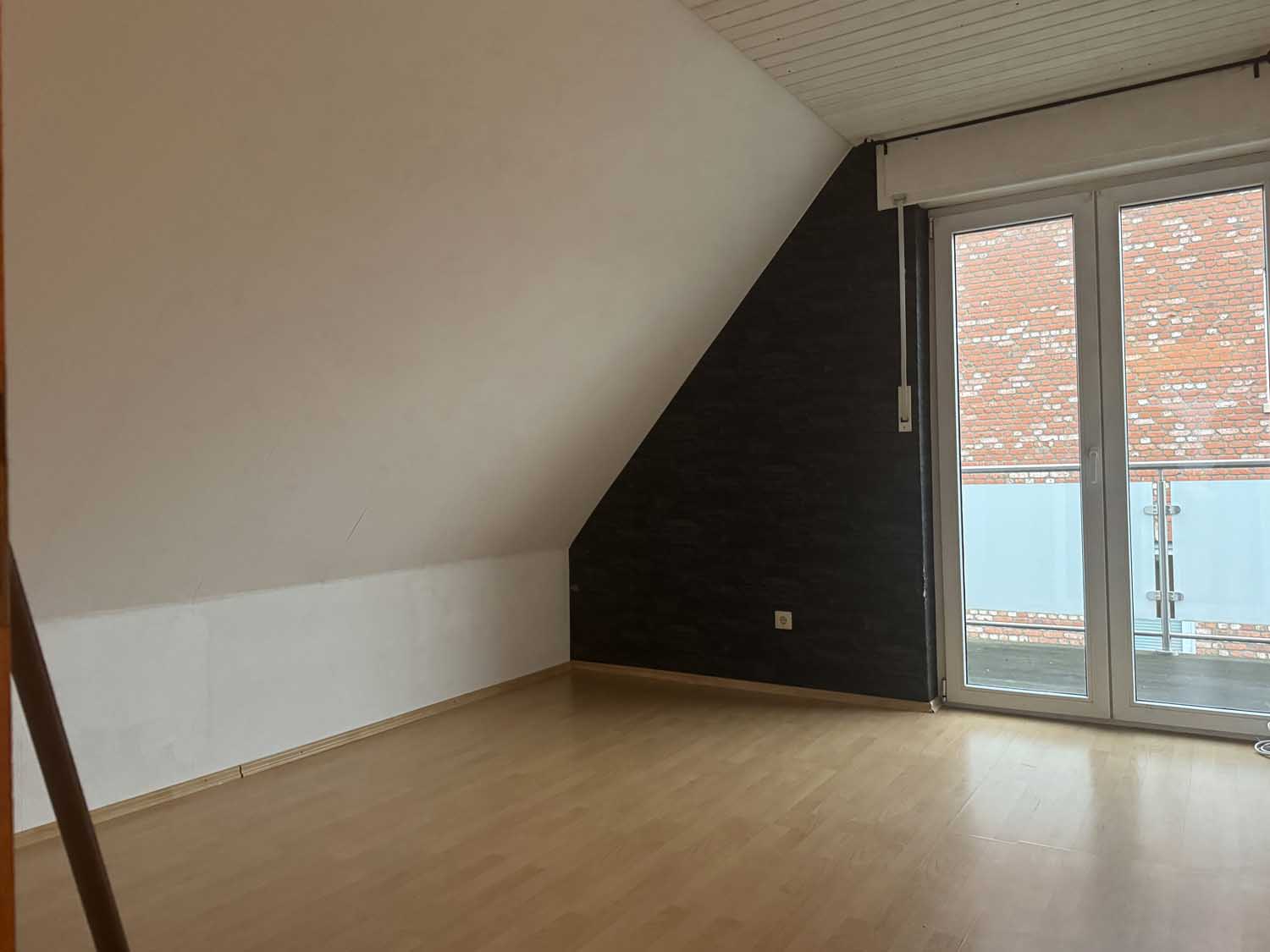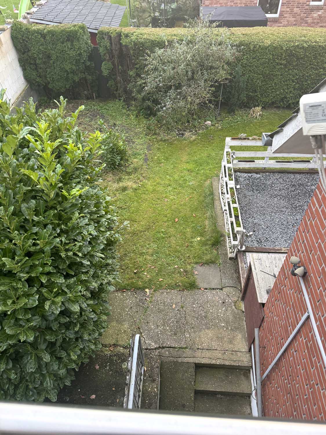 Mittig im Haus liegt das Treppenhaus, das uns ins Obergeschoss führt. Dort befinden sich drei weitere Räume mit knapp 10 m² bis ca. 17 m² und das Badezimmer. Derzeit ist das Badezimmer nur mit Duschwanne ausgestattet, aber es lässt sich leicht eine zusätzliche Dusche einbauen. Sie sehen, alles in allem ist das ein solides Haus für eine Familie mit Kindern oder mit benötigtem Platz für Homeoffice Büros. Einiges wurde schon renoviert, so gab es 2018 eine neue Gasheizung, neue Kunststofffenster im ganzen Haus und der Balkon wurde saniert und bekam ein neues Geländer.