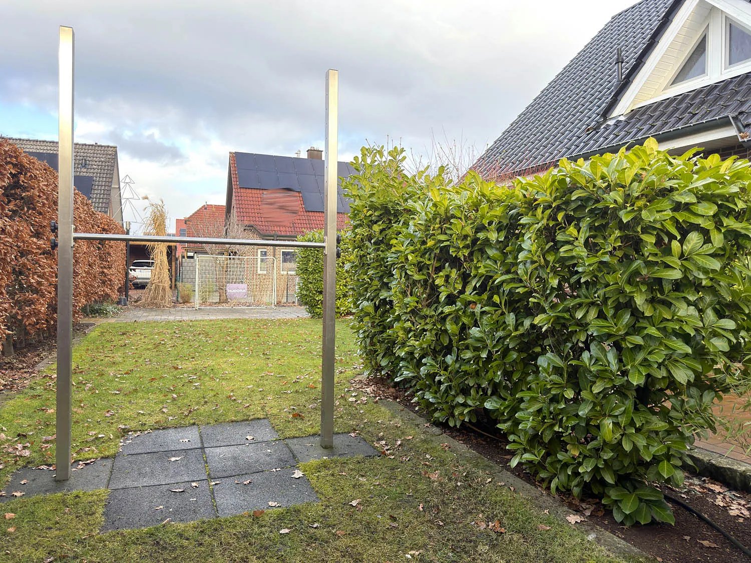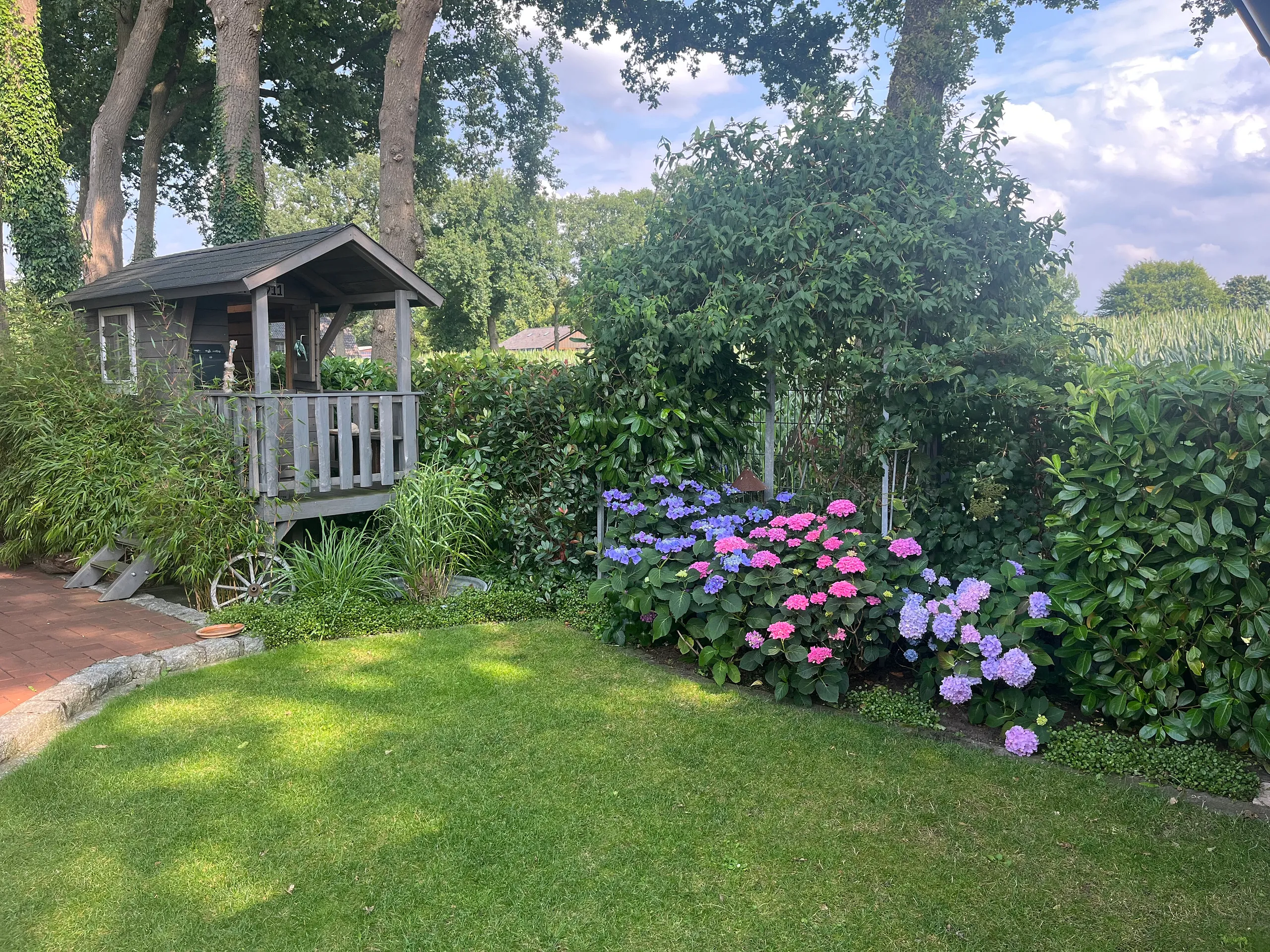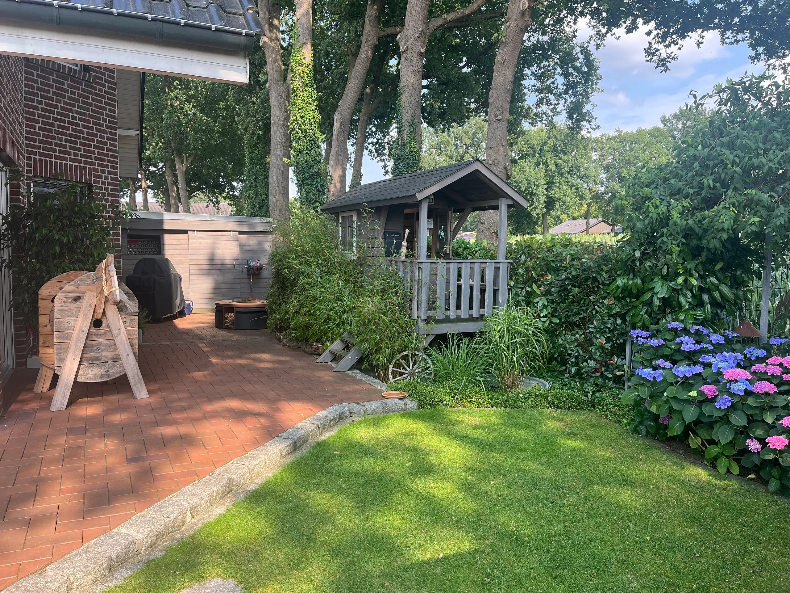 Bereits die Außenanlagen überzeugen: Ein Carport, ein Stellplatz davor sowie ein weiterer PKW-Stellplatz seitlich am Haus sorgen für ausreichend Parkmöglichkeiten – ideal auch bei Besuch. Hinter dem Haus erstreckt sich ein liebevoll angelegter Garten mit viel Rasenfläche, einem Gartenhaus, welches 2019 gebaut wurde, Spielgeräten sowie einer gepflasterten Fläche am Fahrradschuppen mit großer Feuerschale – ein perfekter Ort für entspannte Abende. Die appgesteuerte Gartenbewässerung, ein Mähroboter sowie die vollständige Einzäunung machen die Gartenpflege komfortabel und alltagstauglich.