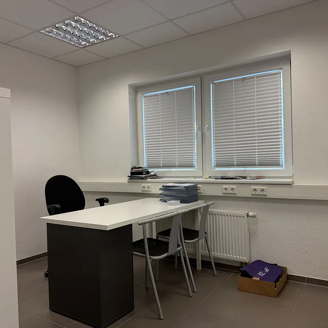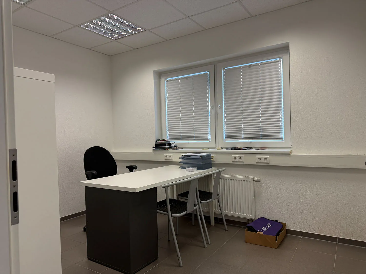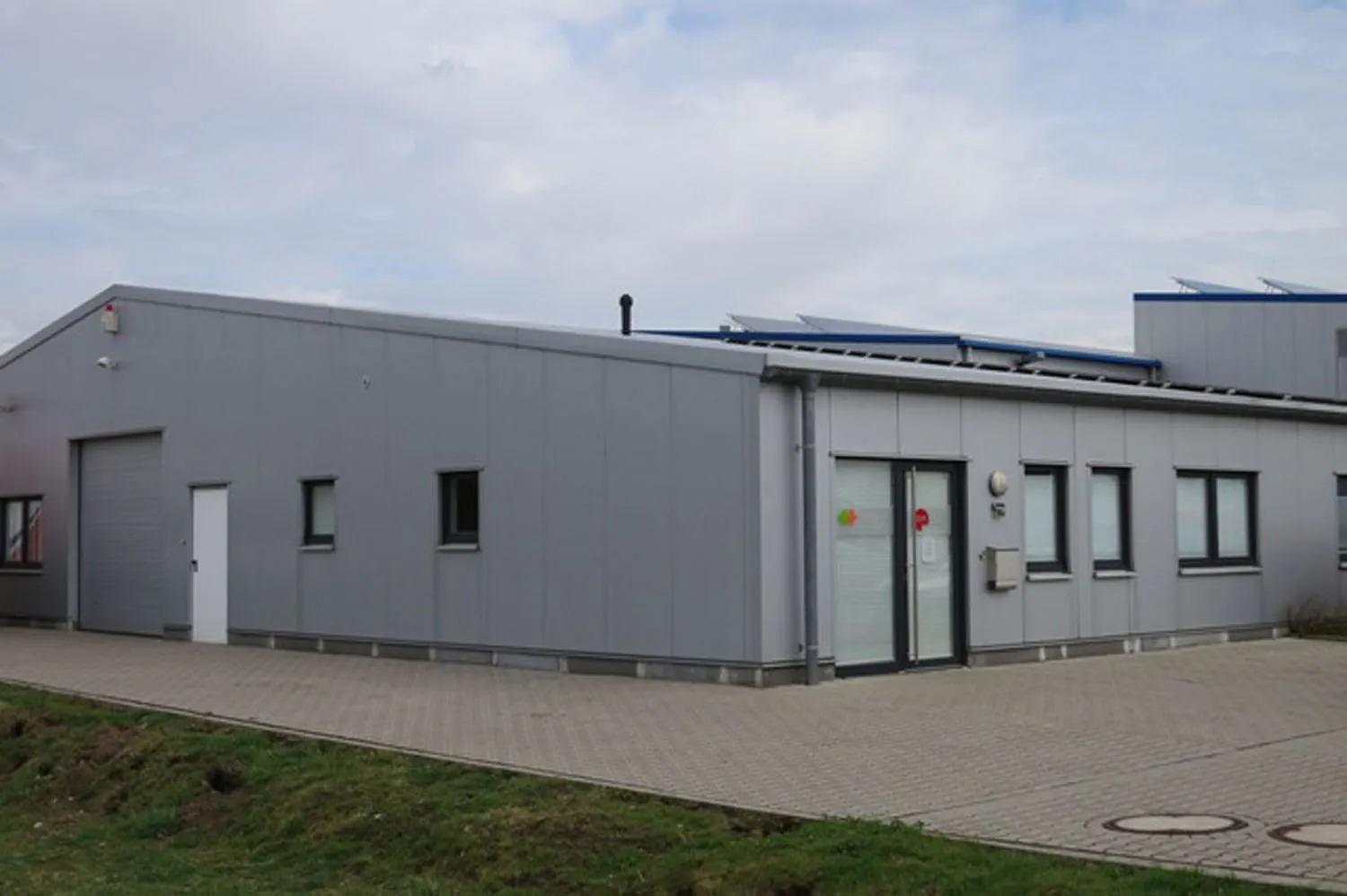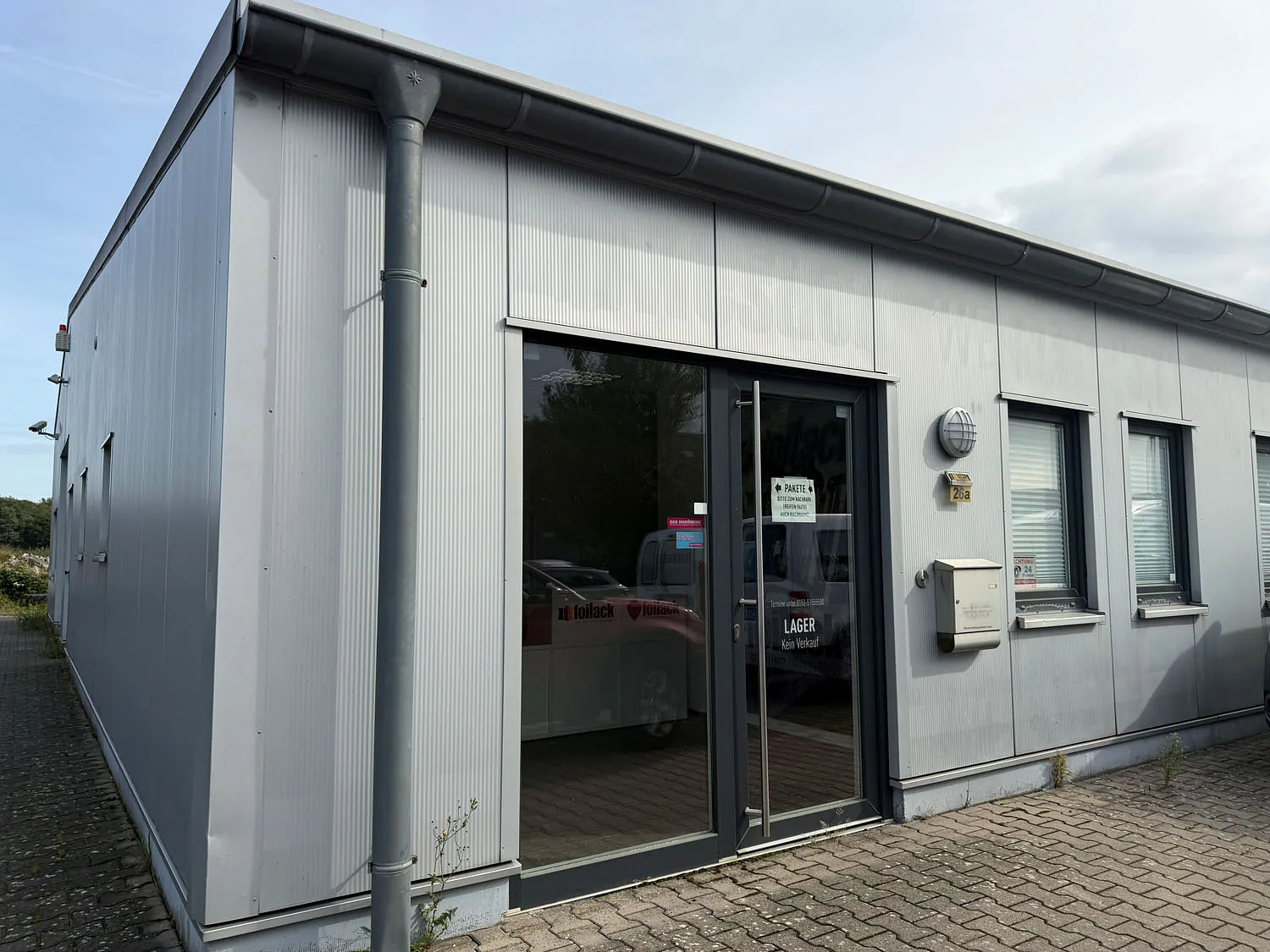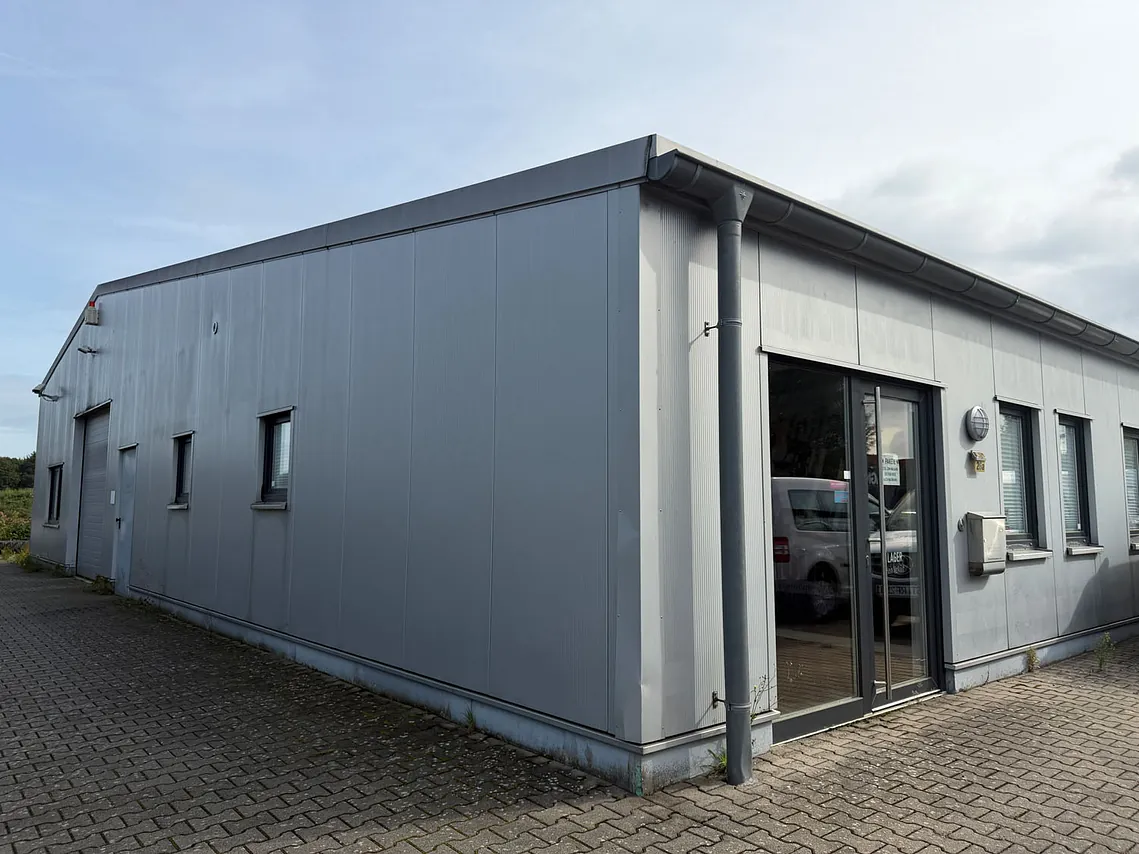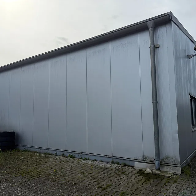 Raumaufteilung und die attraktive Lage im etablierten Gewerbegebiet Mergenthaler Straße – ein Standort, der sich bestens für Ihr eigenes Unternehmen eignet oder als sichere Kapitalanlage mit stabiler Rendite. Die angebotene Immobilie umfasst eine Hallenhälfte mit ca. 200 m² Nutzfläche auf einem 600 m² großen Grundstück. Durch die Brandschutzwand ist die Einheit vollständig von der Nachbarhälfte getrennt und verfügt über eigene Anschlüsse für Strom, Wasser sowie eine separate Gasheizung mit eigenem Außentank. Im vorderen Teil der Immobilie befindet sich ein moderner Bürotrakt mit ca. 65 m² Fläche, aufgeteilt in vier helle Büroräume, einen Sozialraum, zwei WCs und ein Archiv – alle Räume verfügen über Fenster und somit über Tageslicht. Die Hallenfläche von ca. 130 m² im hinteren Bereich ist durch ein seitliches Rolltor (3,5 x 3,5 m) optimal für Warenanlieferungen und Lager geeignet. Mit einer Höhe von bis zu 4,5 m bietet sie auch Platz für größere Projekte. Die gesamte Immobilie ist aus isolierten Sandwich-Elementen in Stahlkonstruktion erstellt – damit ist sie sowohl frostfrei als auch effizient beheizbar. Die Außenfläche ist komplett gepflastert und bietet großzügige Rangiermöglichkeiten sowie vier Pkw-Stellplätze direkt vor der Halle.