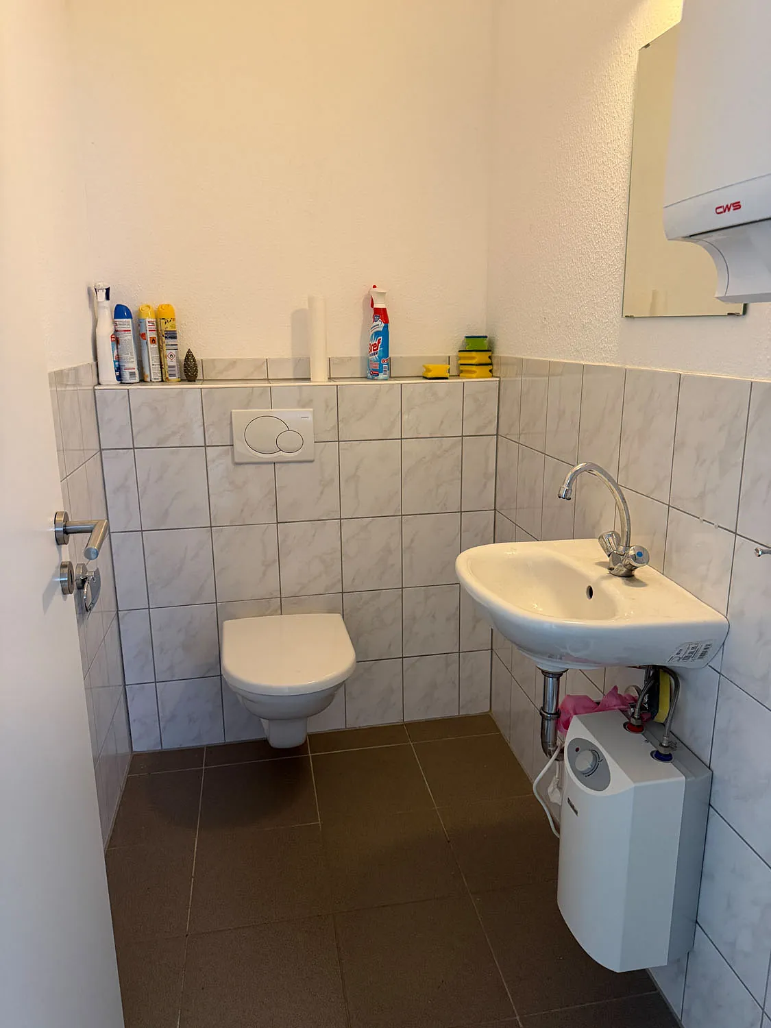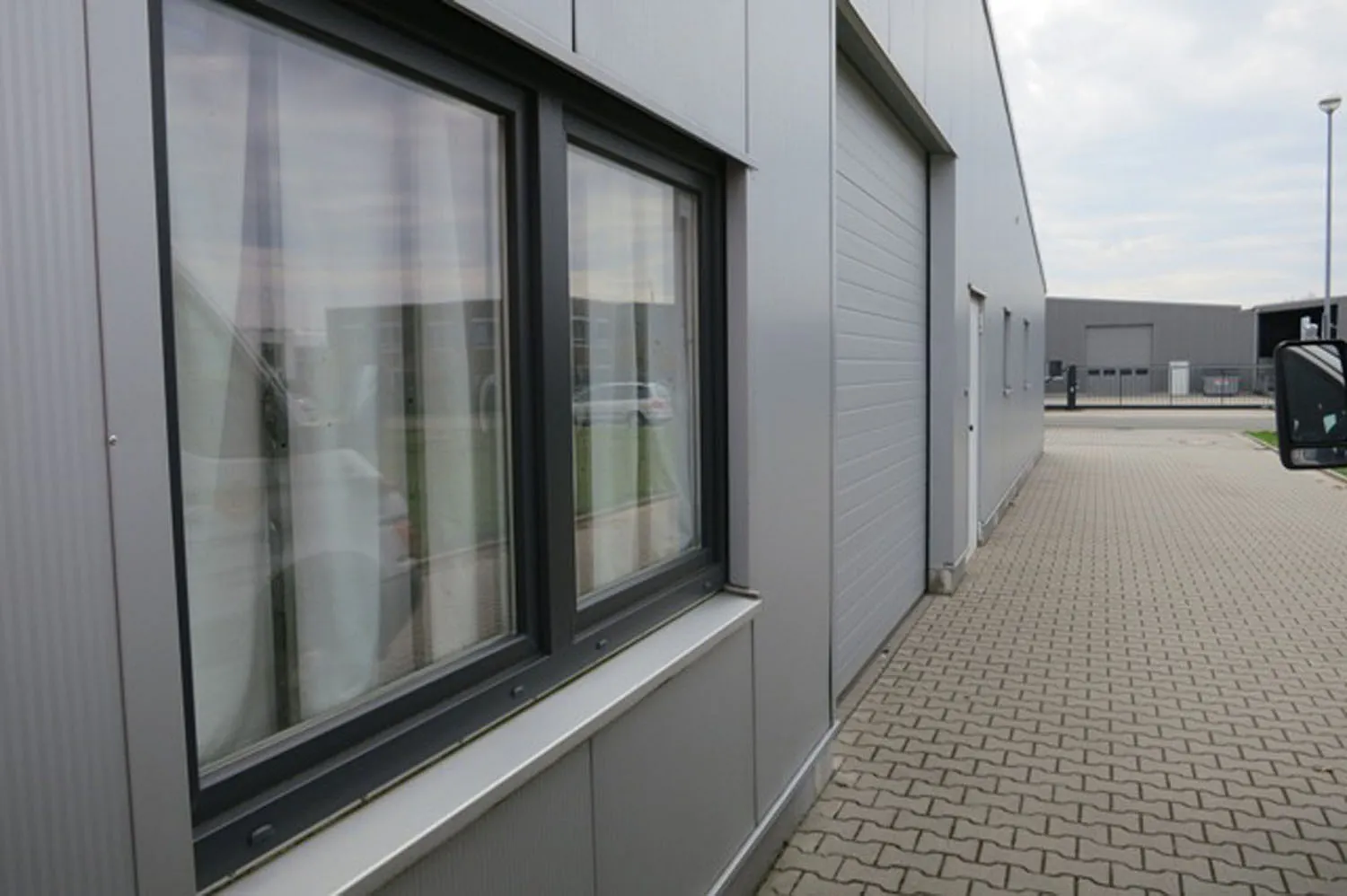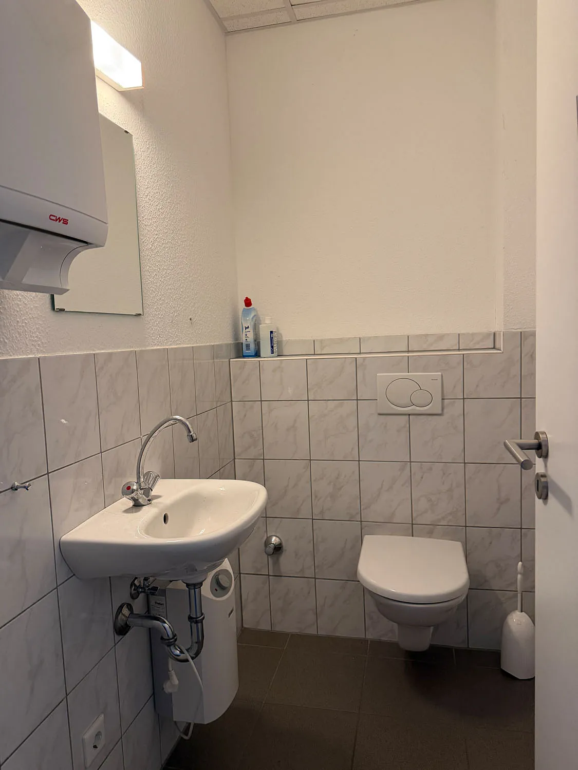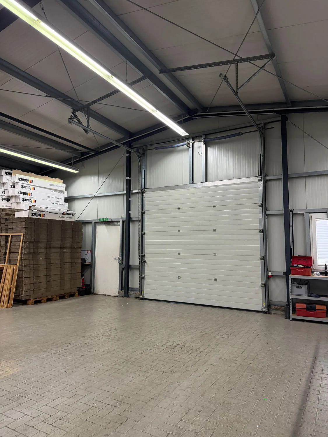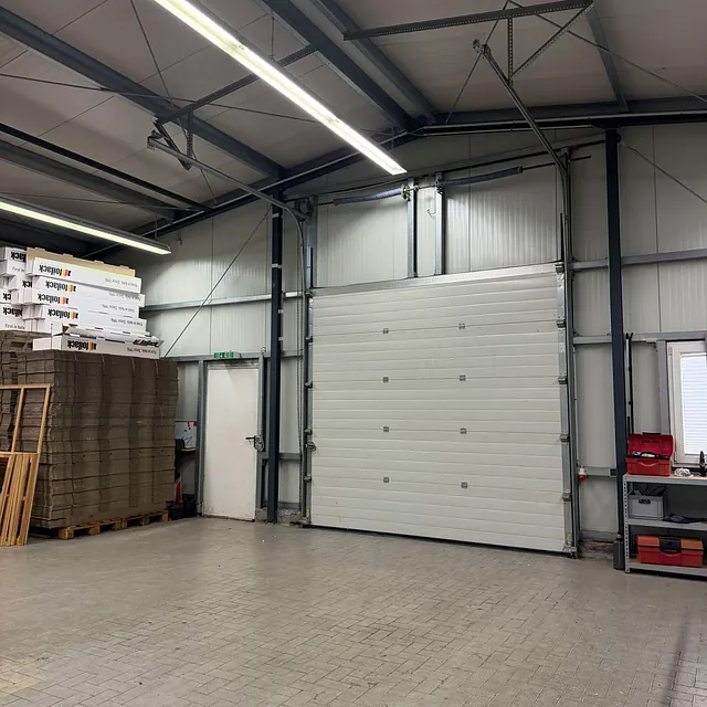 Raumaufteilung und die attraktive Lage im etablierten Gewerbegebiet Mergenthaler Straße – ein Standort, der sich bestens für Ihr eigenes Unternehmen eignet oder als sichere Kapitalanlage mit stabiler Rendite. Die angebotene Immobilie umfasst eine Hallenhälfte mit ca. 200 m² Nutzfläche auf einem 600 m² großen Grundstück. Durch die Brandschutzwand ist die Einheit vollständig von der Nachbarhälfte getrennt und verfügt über eigene Anschlüsse für Strom, Wasser sowie eine separate Gasheizung mit eigenem Außentank. Im vorderen Teil der Immobilie befindet sich ein moderner Bürotrakt mit ca. 65 m² Fläche, aufgeteilt in vier helle Büroräume, einen Sozialraum, zwei WCs und ein Archiv – alle Räume verfügen über Fenster und somit über Tageslicht. Die Hallenfläche von ca. 130 m² im hinteren Bereich ist durch ein seitliches Rolltor (3,5 x 3,5 m) optimal für Warenanlieferungen und Lager geeignet. Mit einer Höhe von bis zu 4,5 m bietet sie auch Platz für größere Projekte. Die gesamte Immobilie ist aus isolierten Sandwich-Elementen in Stahlkonstruktion erstellt – damit ist sie sowohl frostfrei als auch effizient beheizbar. Die Außenfläche ist komplett gepflastert und bietet großzügige Rangiermöglichkeiten sowie vier Pkw-Stellplätze direkt vor der Halle.