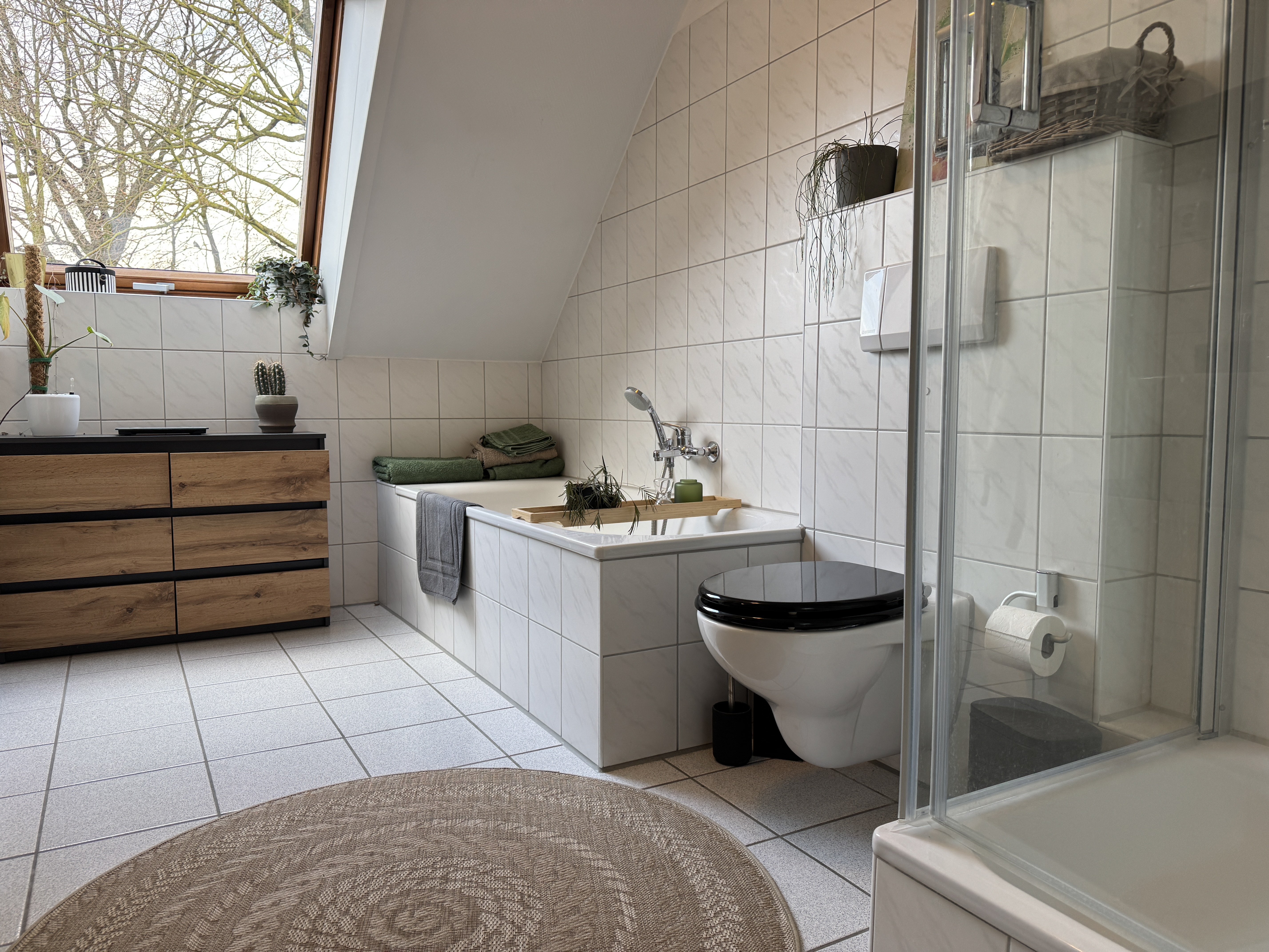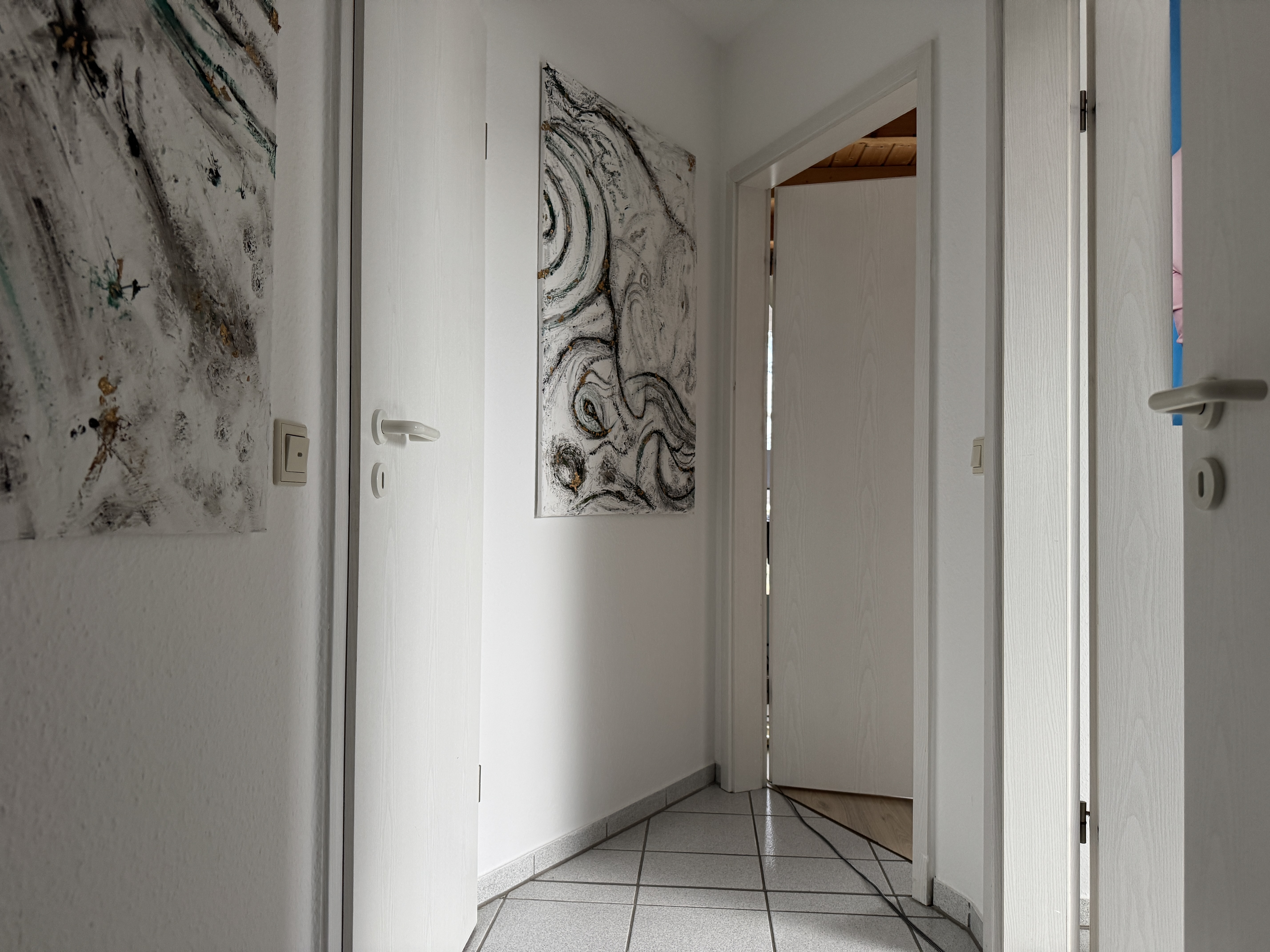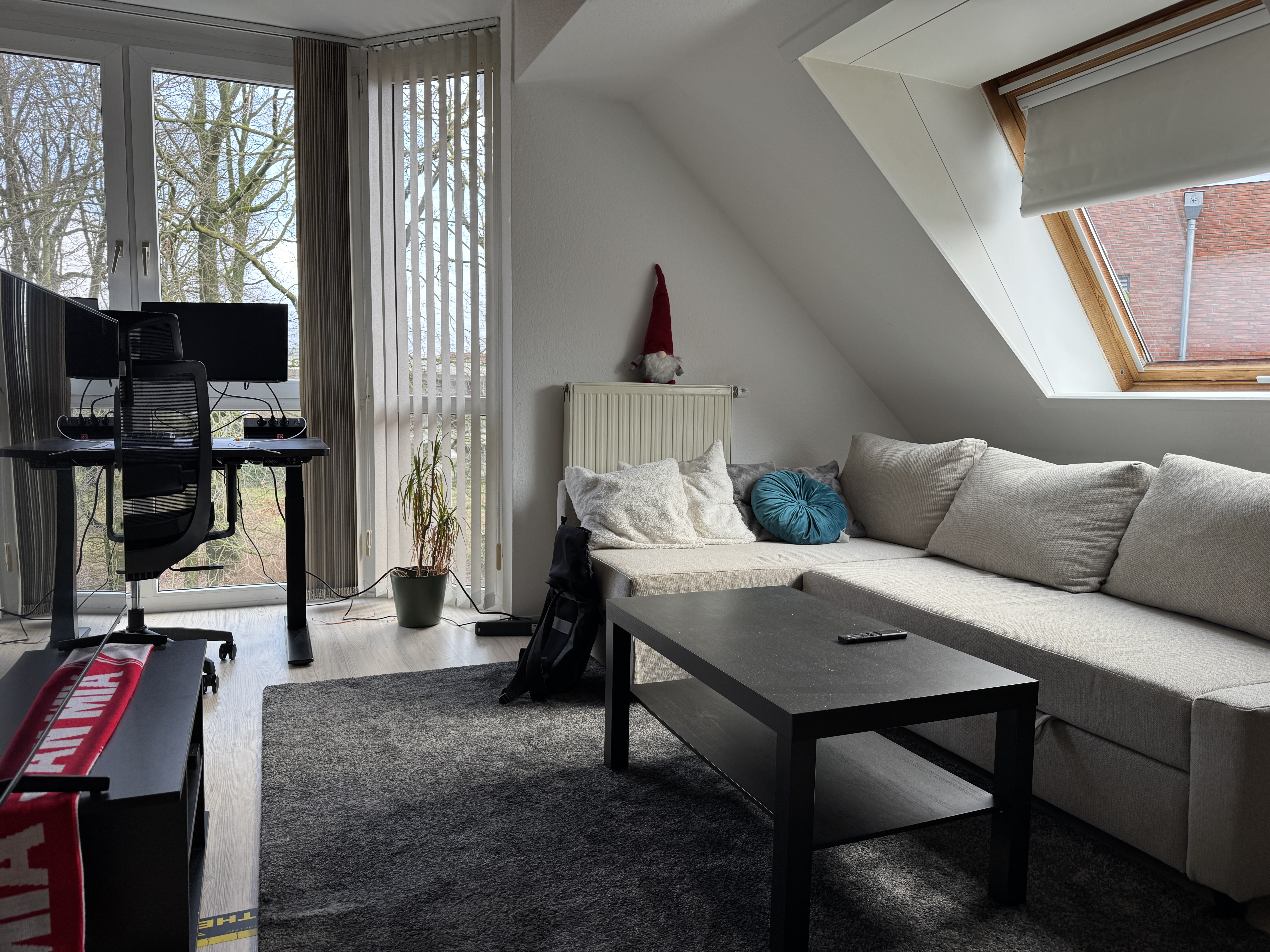Die kleine Seitenstraße, nicht weit von der Saerbecker Straße, liegt ruhig in der Morgensonne. Hier gibt es wenig Verkehr, hier fährt nur entlang, wer hier wohnt. Und dann führt eine kleine Stichstraße nach rechts. Und dort, ganz am Ende liegt unsere schöne Wohnung. Es gibt nur 3 Wohnungen, die eine Eigentümergemeinschaft bilden. Unsere Wohnung liegt im Ober- und Dachgeschoss. Wir gehen rechts an der Haustür eine Treppe hinauf und dann öffnet sich die Tür in den ersten Teil der Wohnung. Direkt links an der Diele liegt das moderne Badezimmer mit Dusche, Wanne und Tageslichtfenster. Daran grenzt der Hauswirtschaftsraum mit Platz für Waschmaschine und Trockner. Geradeaus an der Diele gehen wir durch eine große Glastür in den großzügigen Wohn- und Essbereich mit insgesamt ca. 37 m². Ein besonderer Blickfang ist der Erker am Essbereich. Dieser lässt viel Licht in den schönen Raum. Am Ende des Wohnbereichs gehen wir auf den Balkon mit Platz genug für eine Sitzecke und einen großen Grill. Die Küche liegt am Esszimmer und bietet mit ihren ca. 10 m² und dem quadratischen Schnitt genug Raum für große Arbeitsplatten und zusätzlich einen kleinen Esstisch. Zurück in der Diele gibt es direkt rechts noch einen kleinen Abstellraum, daneben liegt das Schlafzimmer. Mit seinen ca. 14,5 m² ist es ausreichend groß für Schränke und das große Doppelbett. Zurück im Treppenhaus gehen wir eine weitere Treppe hinauf in den zweiten Teil der spannenden Wohnung. Dort oben gibt es ein weiteres kleines Badezimmer mit Dusche und Tageslichtfenster und zwei große zusätzliche Räume die derzeit als Büros genutzt werden. Eine eigene Garage gibt es auch, sie ist im Kaufpreis bereits enthalten. Außerdem: die Nebenkosten sind wunderbar überschaubar. Es gibt eben keinen Aufzug, keine Tiefgarage, keinen Gärtner. Die Eigentümer passen gut auf ihre Immobilie auf. Und der Verwalter macht einen guten Job. So liegt die Rücklage aktuell bereits bei ca. 13.300 €. Und die Nebenkosten lagen 2023 zum Beispiel nur bei 170 €. Darin enthalten sind bereits Allgemeinstrom, Grundabgaben, Gebäudeversicherung, Rücklage und Verwaltung. Dazu kommen nur noch die eigenen Kosten für Wasser und Strom. Jede Wohnung hat ihre eigene Gasheizung, so zahlen Sie wirklich nur den eigenen Verbrauch. Derzeit wohnt ein nettes junges Paar in der Wohnung für eine monatliche Kaltmiete von 945 € . Sie würden gern dort wohnen bleiben.