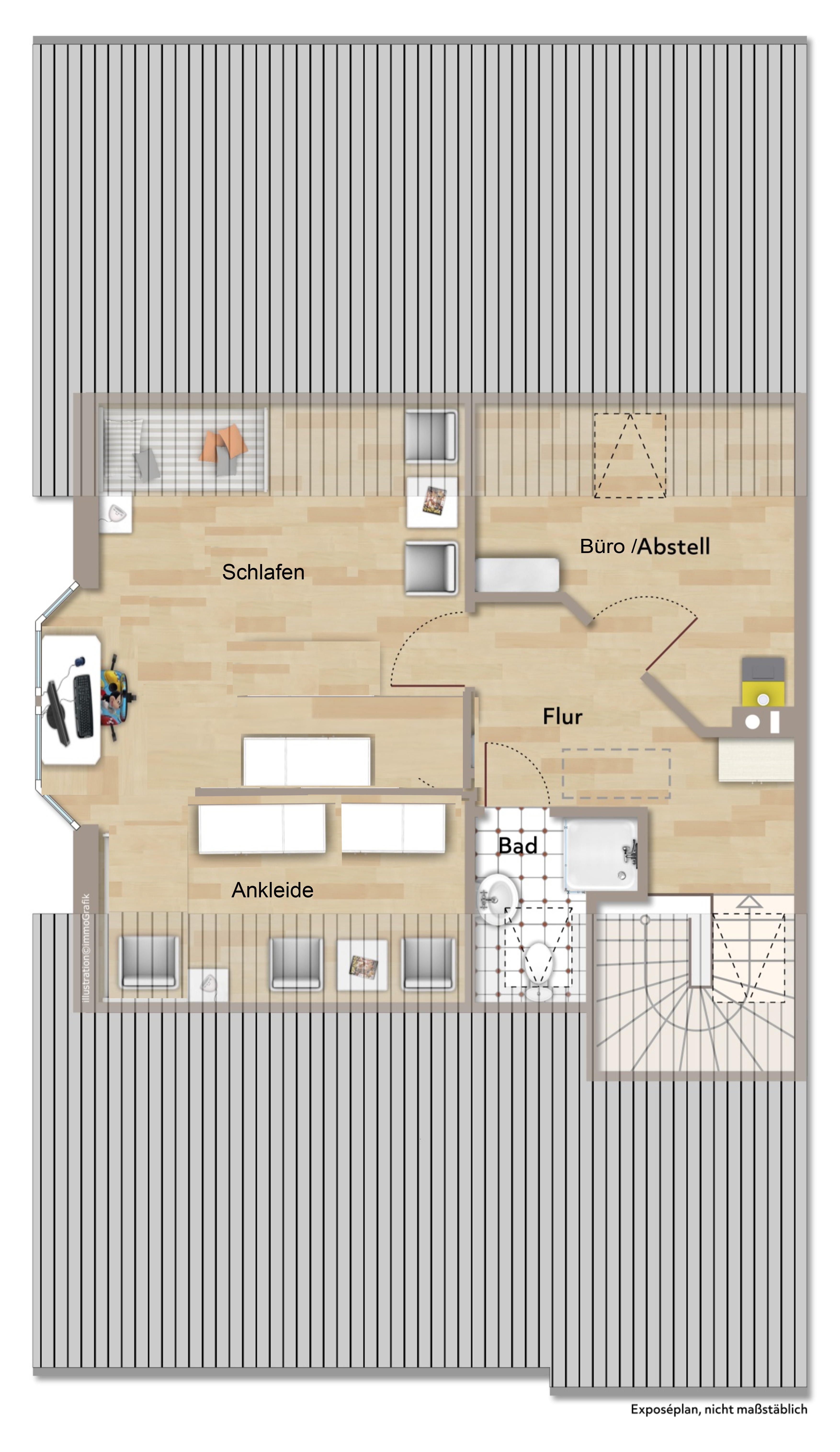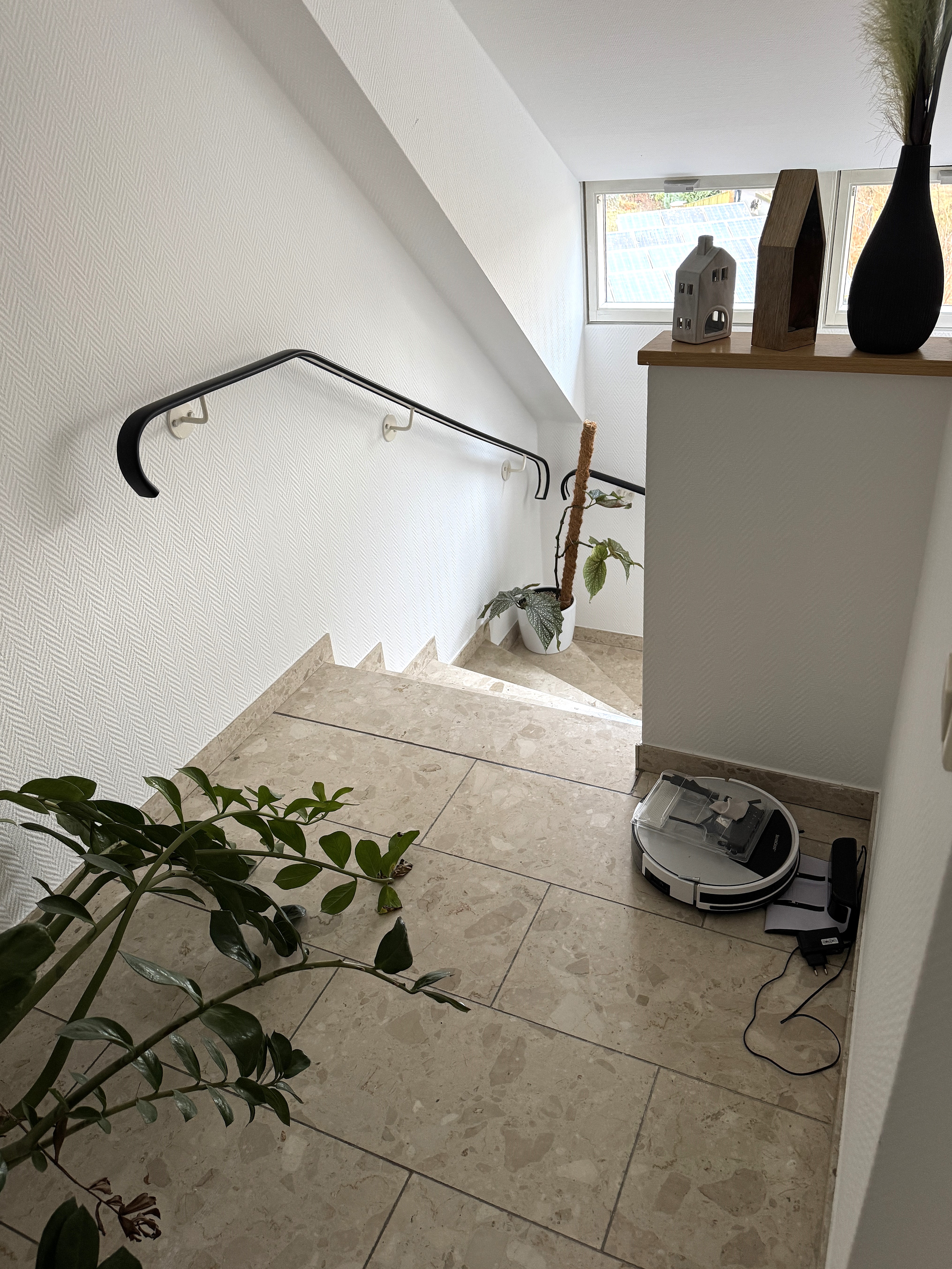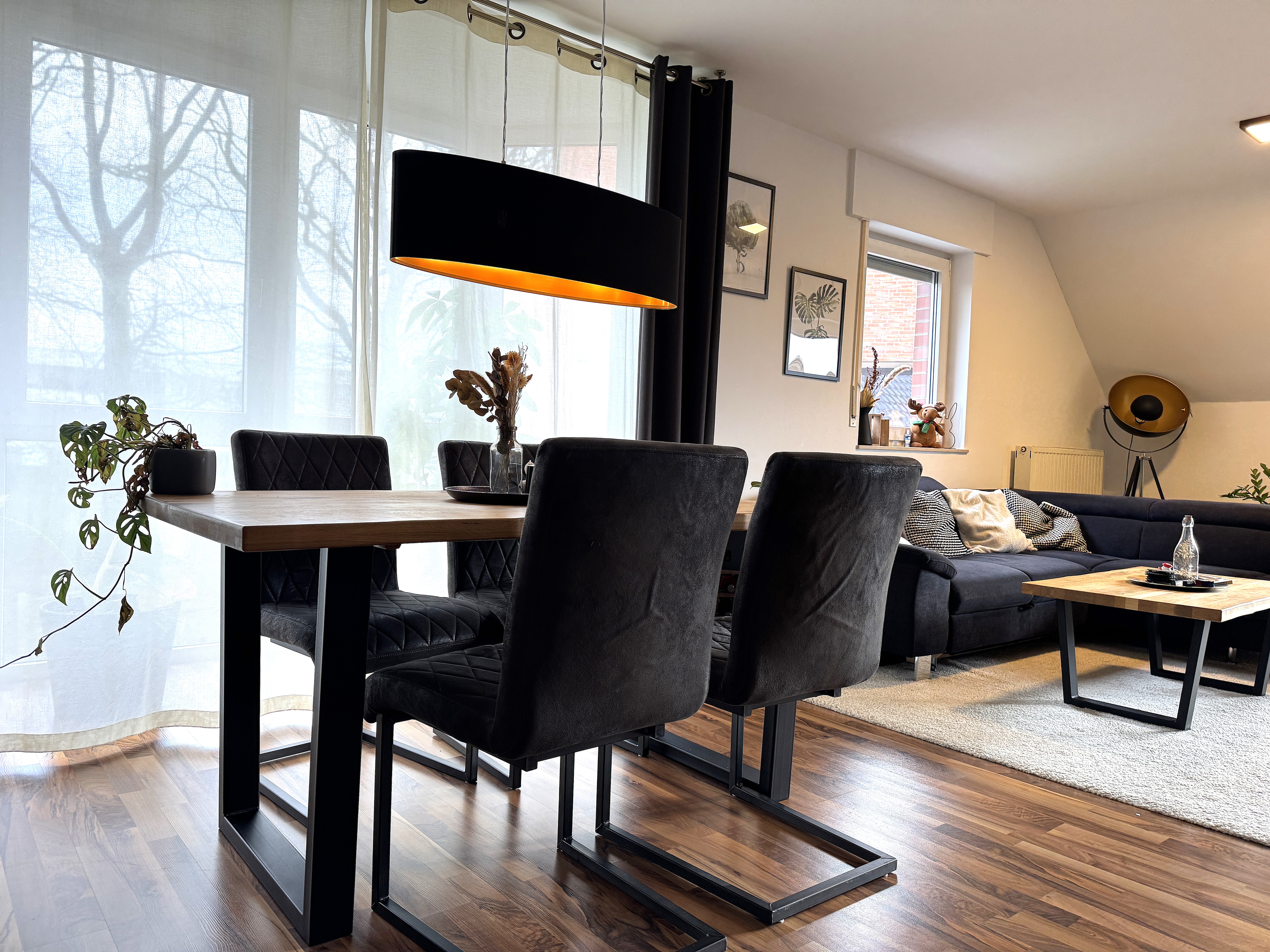 Die kleine Seitenstraße, nicht weit von der Saerbecker Straße, liegt ruhig in der Morgensonne. Hier gibt es wenig Verkehr, hier fährt nur entlang, wer hier wohnt. Und dann führt eine kleine Stichstraße nach rechts. Und dort, ganz am Ende liegt unsere schöne Wohnung. Es gibt nur 3 Wohnungen, die eine Eigentümergemeinschaft bilden. Unsere Wohnung liegt im Ober- und Dachgeschoss. Wir gehen rechts an der Haustür eine Treppe hinauf und dann öffnet sich die Tür in den ersten Teil der Wohnung. Direkt links an der Diele liegt das moderne Badezimmer mit Dusche, Wanne und Tageslichtfenster. Daran grenzt der Hauswirtschaftsraum mit Platz für Waschmaschine und Trockner. Geradeaus an der Diele gehen wir durch eine große Glastür in den großzügigen Wohn- und Essbereich mit insgesamt ca. 37 m². Ein besonderer Blickfang ist der Erker am Essbereich. Dieser lässt viel Licht in den schönen Raum. Am Ende des Wohnbereichs gehen wir auf den Balkon mit Platz genug für eine Sitzecke und einen großen Grill. Die Küche liegt am Esszimmer und bietet mit ihren ca. 10 m² und dem quadratischen Schnitt genug Raum für große Arbeitsplatten und zusätzlich einen kleinen Esstisch. Zurück in der Diele gibt es direkt rechts noch einen kleinen Abstellraum, daneben liegt das Schlafzimmer. Mit seinen ca. 14,5 m² ist es ausreichend groß für Schränke und das große Doppelbett. Zurück im Treppenhaus gehen wir eine weitere Treppe hinauf in den zweiten Teil der spannenden Wohnung. Dort oben gibt es ein weiteres kleines Badezimmer mit Dusche und Tageslichtfenster und zwei große zusätzliche Räume die derzeit als Büros genutzt werden. Eine eigene Garage gibt es auch, sie ist im Kaufpreis bereits enthalten. Außerdem: die Nebenkosten sind wunderbar überschaubar. Es gibt eben keinen Aufzug, keine Tiefgarage, keinen Gärtner. Die Eigentümer passen gut auf ihre Immobilie auf. Und der Verwalter macht einen guten Job. So liegt die Rücklage aktuell bereits bei ca. 13.300 €. Und die Nebenkosten lagen 2023 zum Beispiel nur bei 170 €. Darin enthalten sind bereits Allgemeinstrom, Grundabgaben, Gebäudeversicherung, Rücklage und Verwaltung. Dazu kommen nur noch die eigenen Kosten für Wasser und Strom. Jede Wohnung hat ihre eigene Gasheizung, so zahlen Sie wirklich nur den eigenen Verbrauch. Derzeit wohnt ein nettes junges Paar in der Wohnung für eine monatliche Kaltmiete von 945 € . Sie würden gern dort wohnen bleiben.