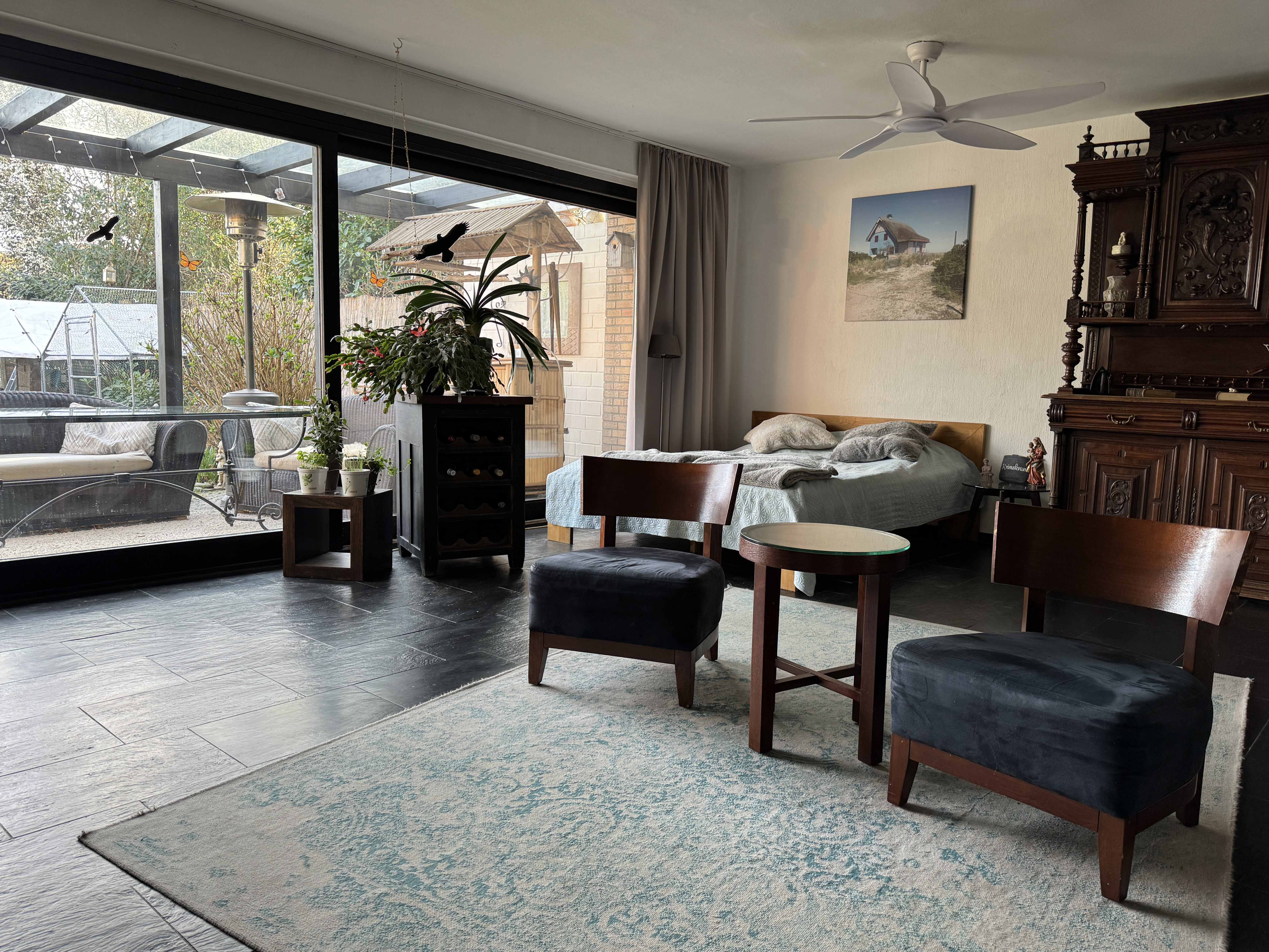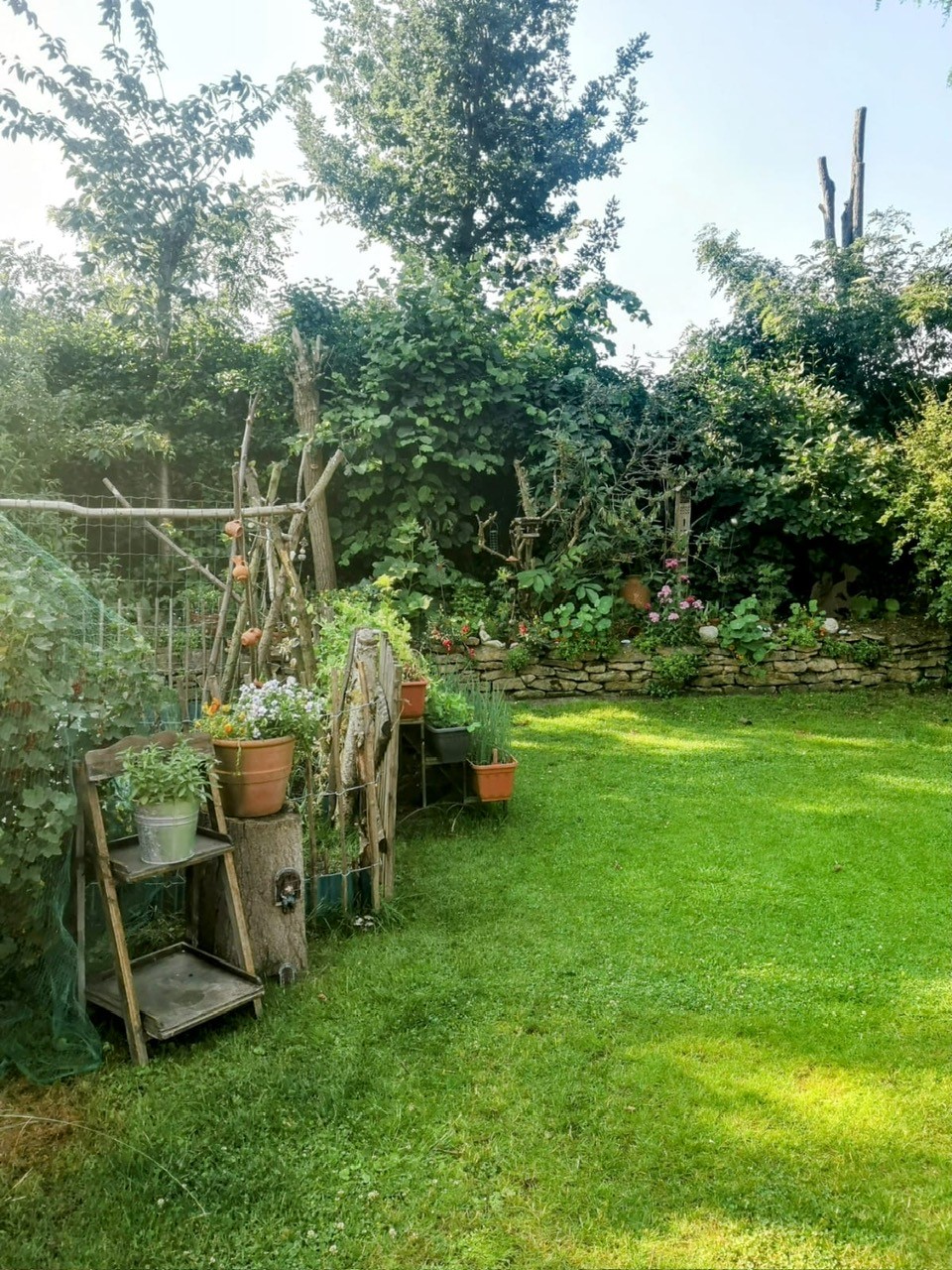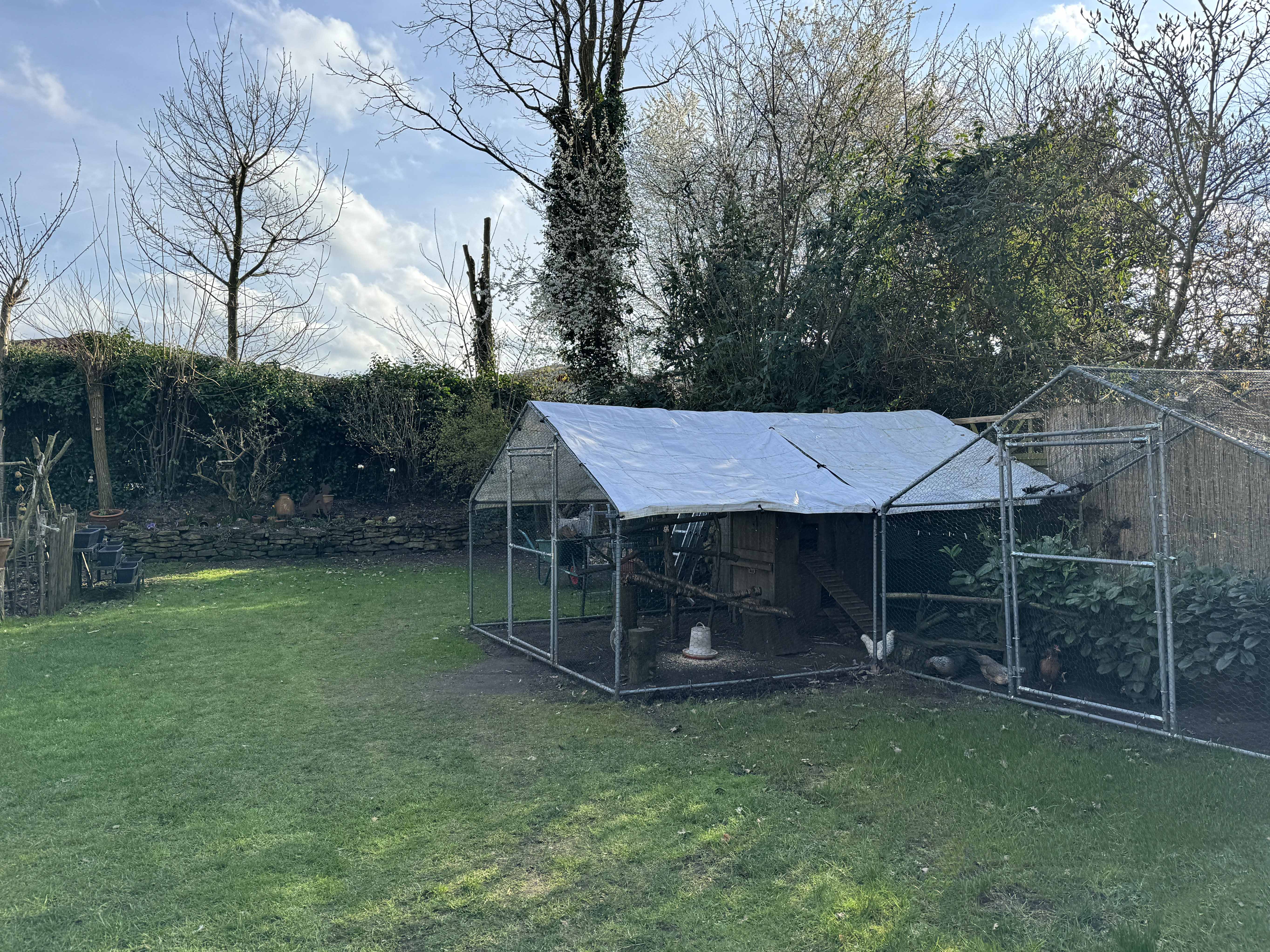 Von dort lassen wir den Blick in den Garten schweifen. Dieser ist derzeit pflegeleicht mit viel Rasenfläche angelegt. Ein Gewächshaus und eine Gartenhütte stehen hier. Und sicher finden bei Bedarf eine Schaukel oder ein Sandkasten noch Platz. Ein Seitengang neben dem Haus führt direkt in die Garage und auch in den Hauswirtschaftsraum. Das ist praktisch. Zurück im Haus laufen wir rechts, etwas abgetrennt von dem Rest der Wohnung in den Teil, der zurzeit gewerblich genutzt wird. Hier betreut die Eigentümerin Kinder als Tagesmutter. Es gibt zwei Zimmer mit 13,5 m² und 15 m², den Hauswirtschaftsraum, mit Platz für Waschmaschine und Trockner und ein weiß gefliestes WC mit Tageslichtfenster. Natürlich können die Räume auch direkt wieder als Schlafräume für weitere Kinder oder als Büros für Home-Office genutzt werden.